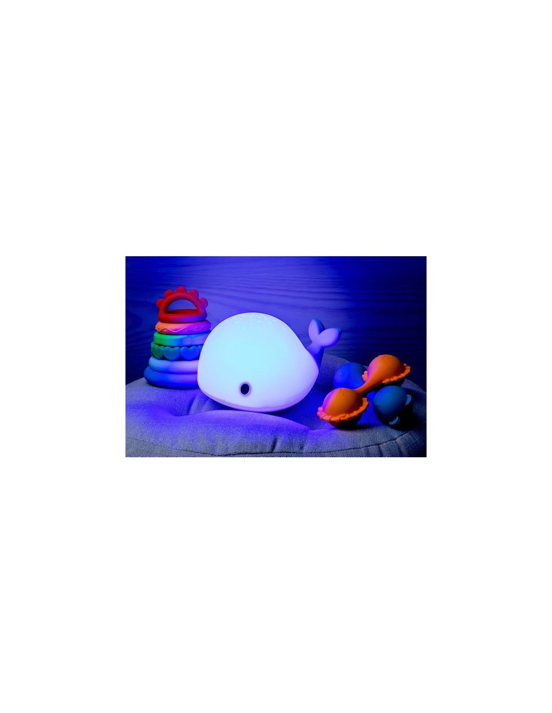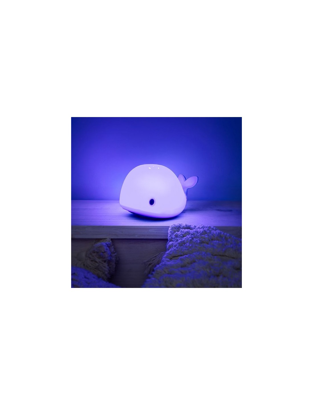 La veilleuse Baleine Wilda bleue est une veilleuse tactile souple en silicone, qui projete de petits poissons.