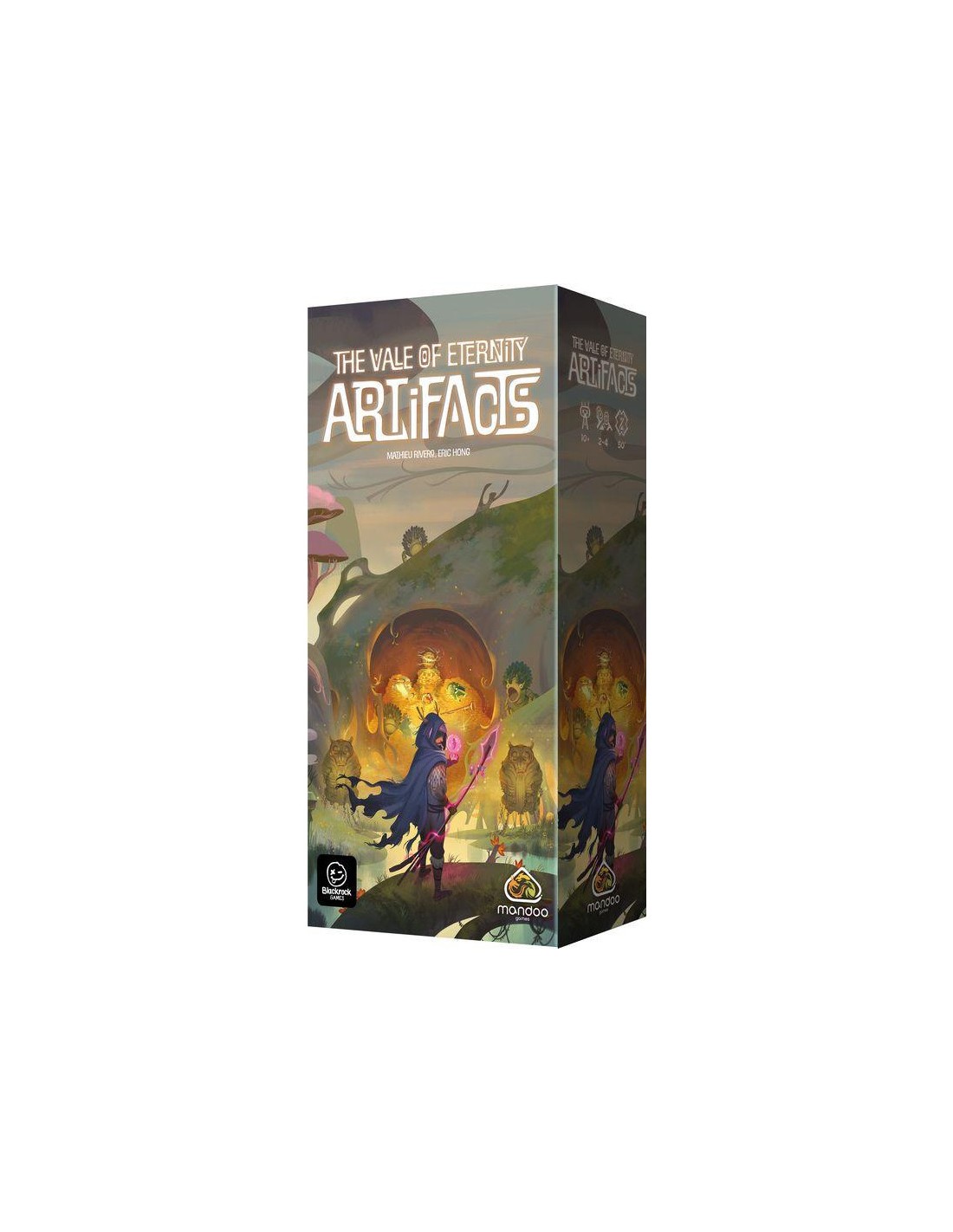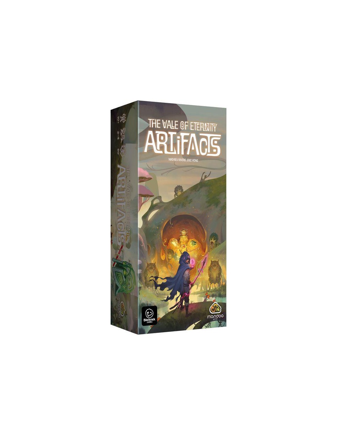 Avec l'extension Artifacts, explorez la puissance des objets magiques ! Chaque tour, les joueurs choisissent un artefact, introduisant de nouvelles règles de jeu telles que l'Accueil et l'Abris. La piste de score s'étend jusqu'à 80 points, et vous pouvez découvrir 24 nouvelles créatures légendaires.