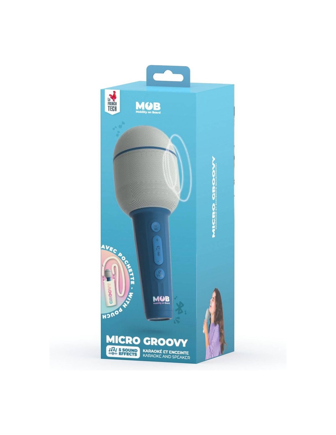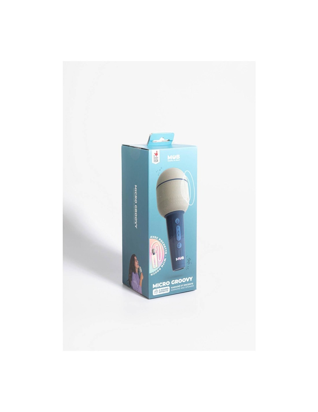 Ce microphone sans fil aux couleurs pop amplifie votre voix pour le plus grand bonheur des fans de karaoké ! Montrez vos talents de chanteur ou bien de showman en utilisant les effets sonores amusants : voix grave où très aigu, à vous de choisir. Le micro Groovy est aussi équipé d’une enceinte avec une puissance de 5W.