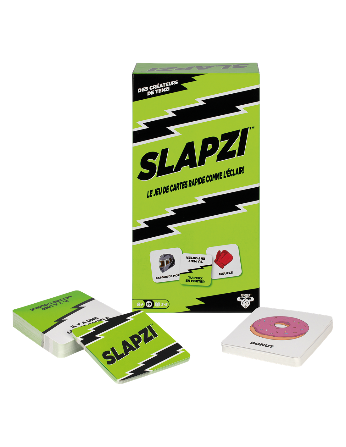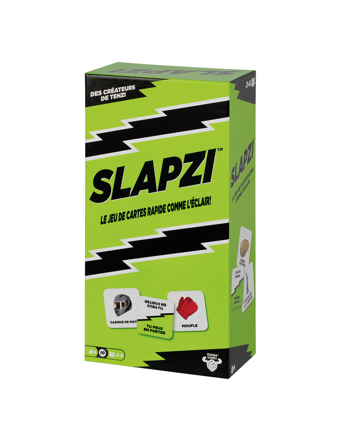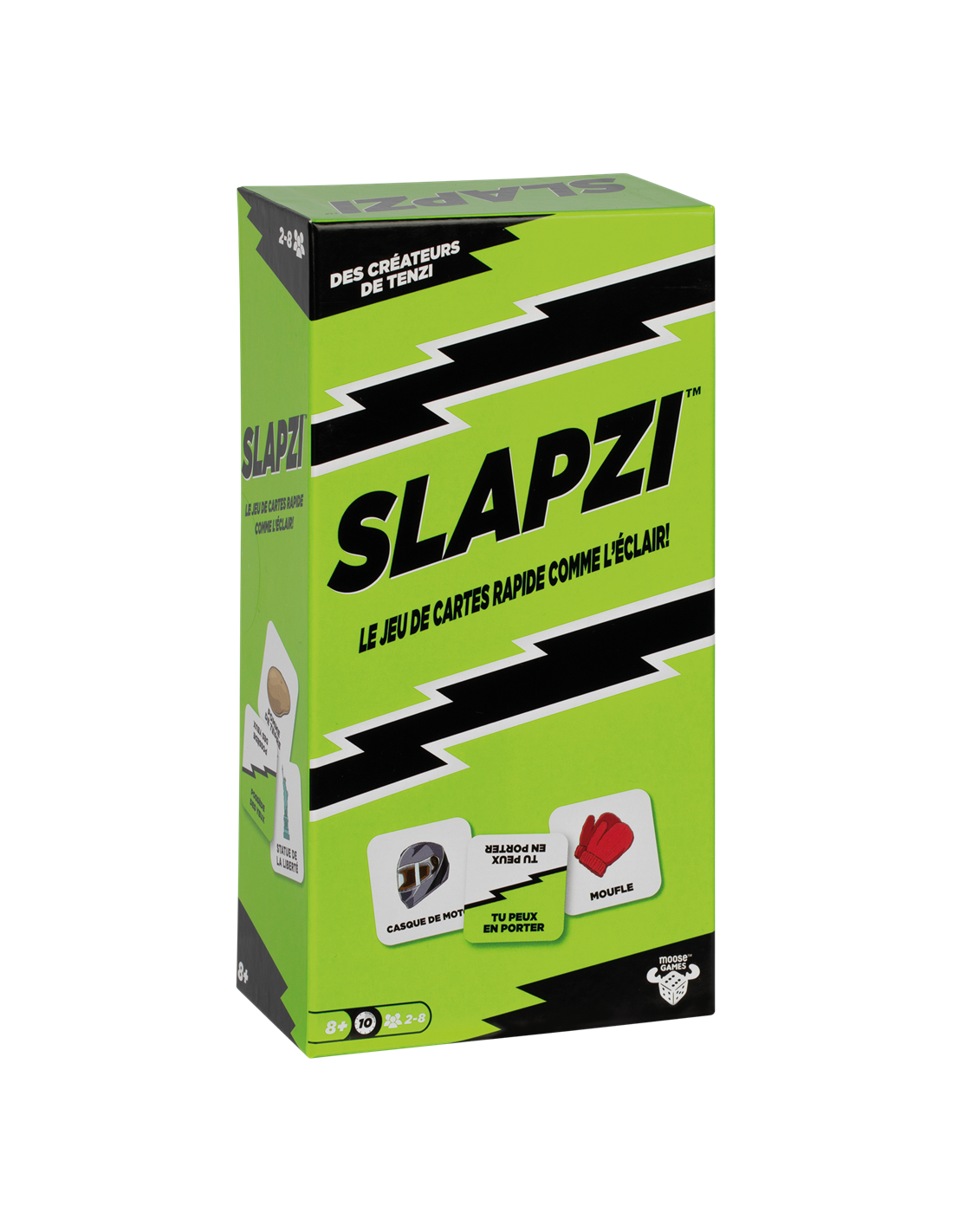 Le but du jeu est d’être le premier joueur à se débarrasser de toutes ses cartes objets. Pour encore plus de fun, Slapzi propose plusieurs variantes de règles, telles que Double Slap It, Opposés, Deux choix, ou encore Tordu, pour renouveler sans cesse les défis et l’ambiance autour de la table.