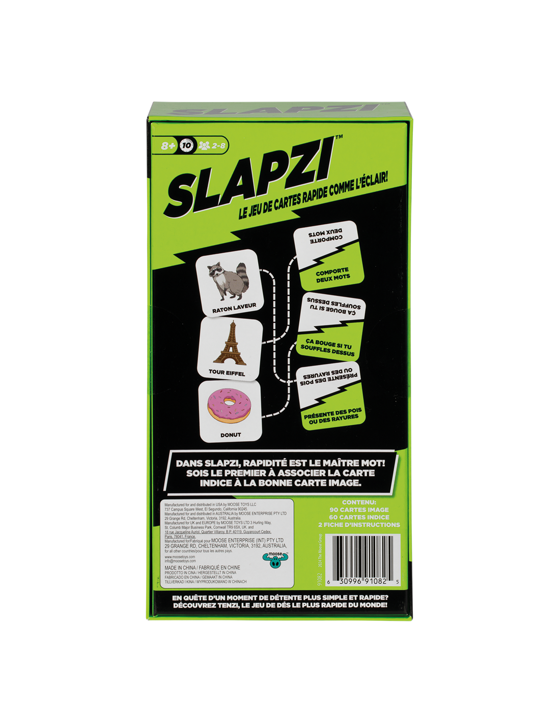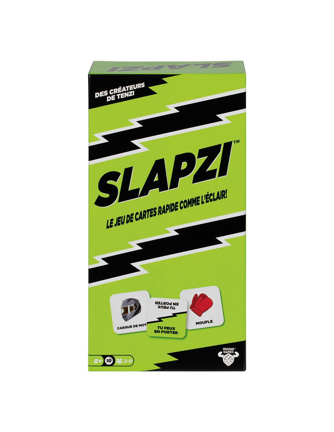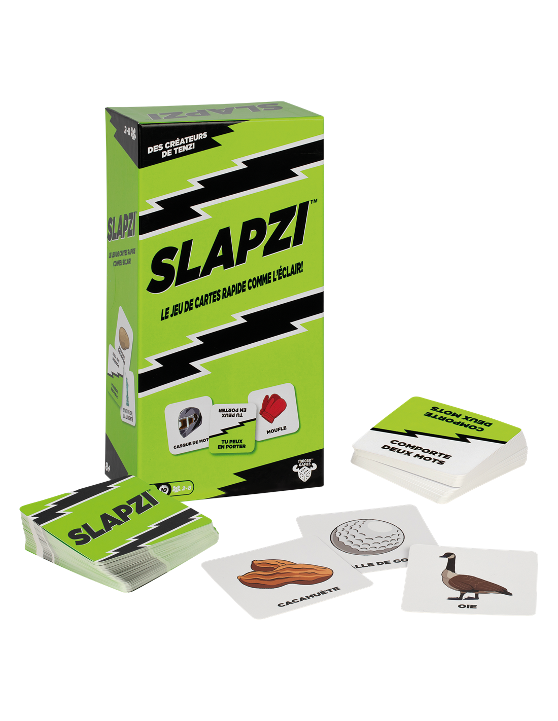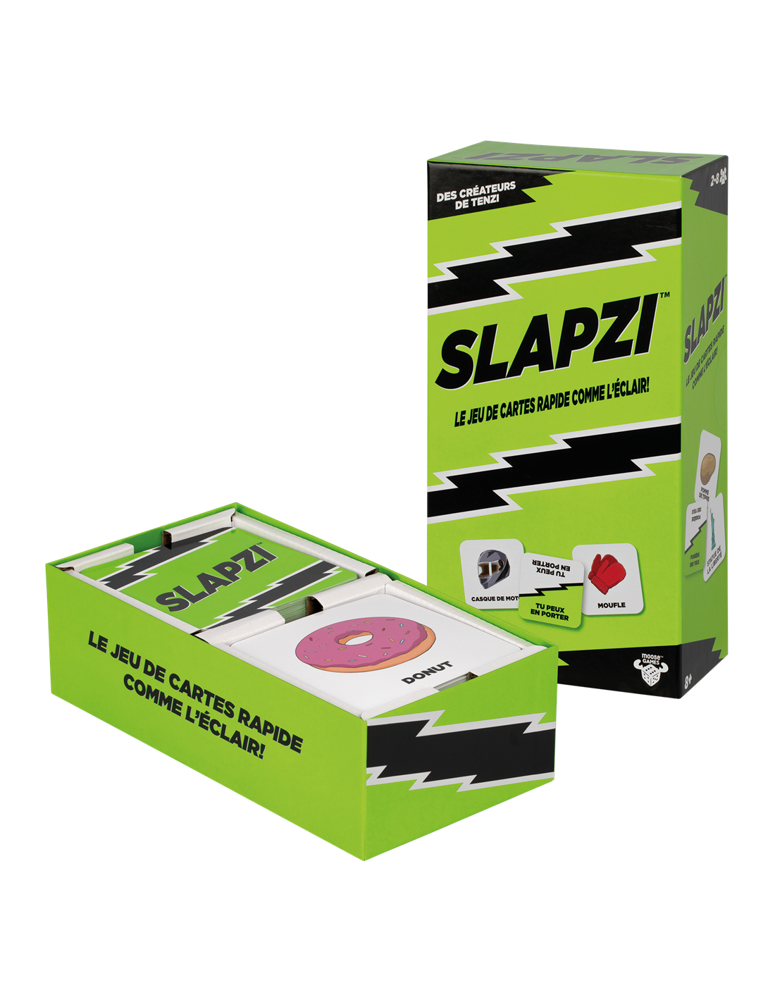 Le but du jeu est d’être le premier joueur à se débarrasser de toutes ses cartes objets. Pour encore plus de fun, Slapzi propose plusieurs variantes de règles, telles que Double Slap It, Opposés, Deux choix, ou encore Tordu, pour renouveler sans cesse les défis et l’ambiance autour de la table.