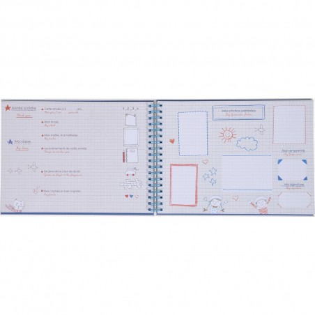 A travers 8 années scolaires vous allez conserver les trésors et meilleurs souvenirs des années d'école dans un grand album de 36 pages à spirales sur le thème Moulin Roty Aujourd'hui c'est Mercredi. Idéal pour se remémorer plus tard les moments de la maternelle et primaire et reconnaitre les copains et copines.