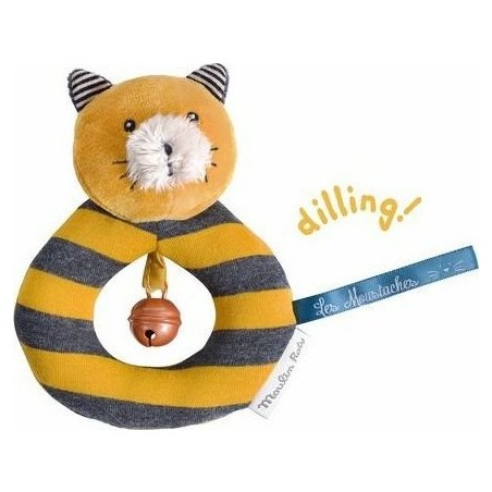 Le hochet en tissu chat Lulu de la collection "Les Moustaches" est un anneau à l'effigie du chat Lulu, avec un grelot qui fait du bruit lorsque bébé le secoue. Le hochet est tout doux et facile à attraper par les petites mains. De couleurs vives et aux textures douces, ce premier jouet d'éveil plaira aux tout-petits.