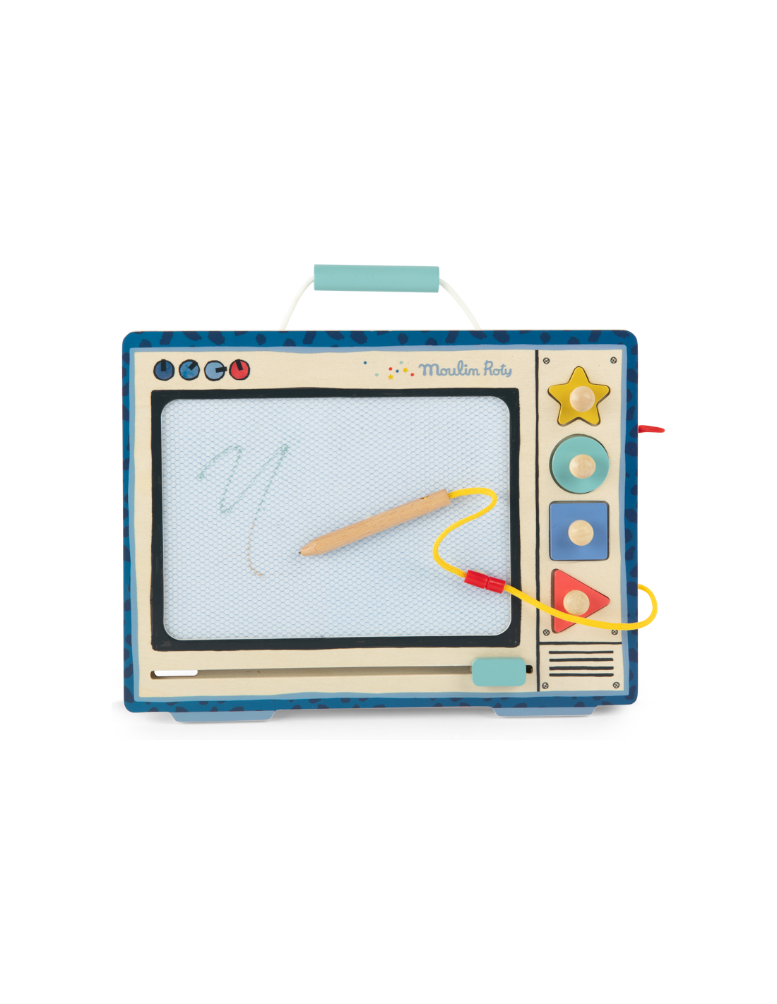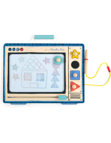 Le télé ardoise magique Puce & Pilou laisse place à la créativité. Muni d'une réglette et de tampons, il offre une multitude de possibilités pour dessiner à l'infini. Tout pour devenir un véritable artiste !