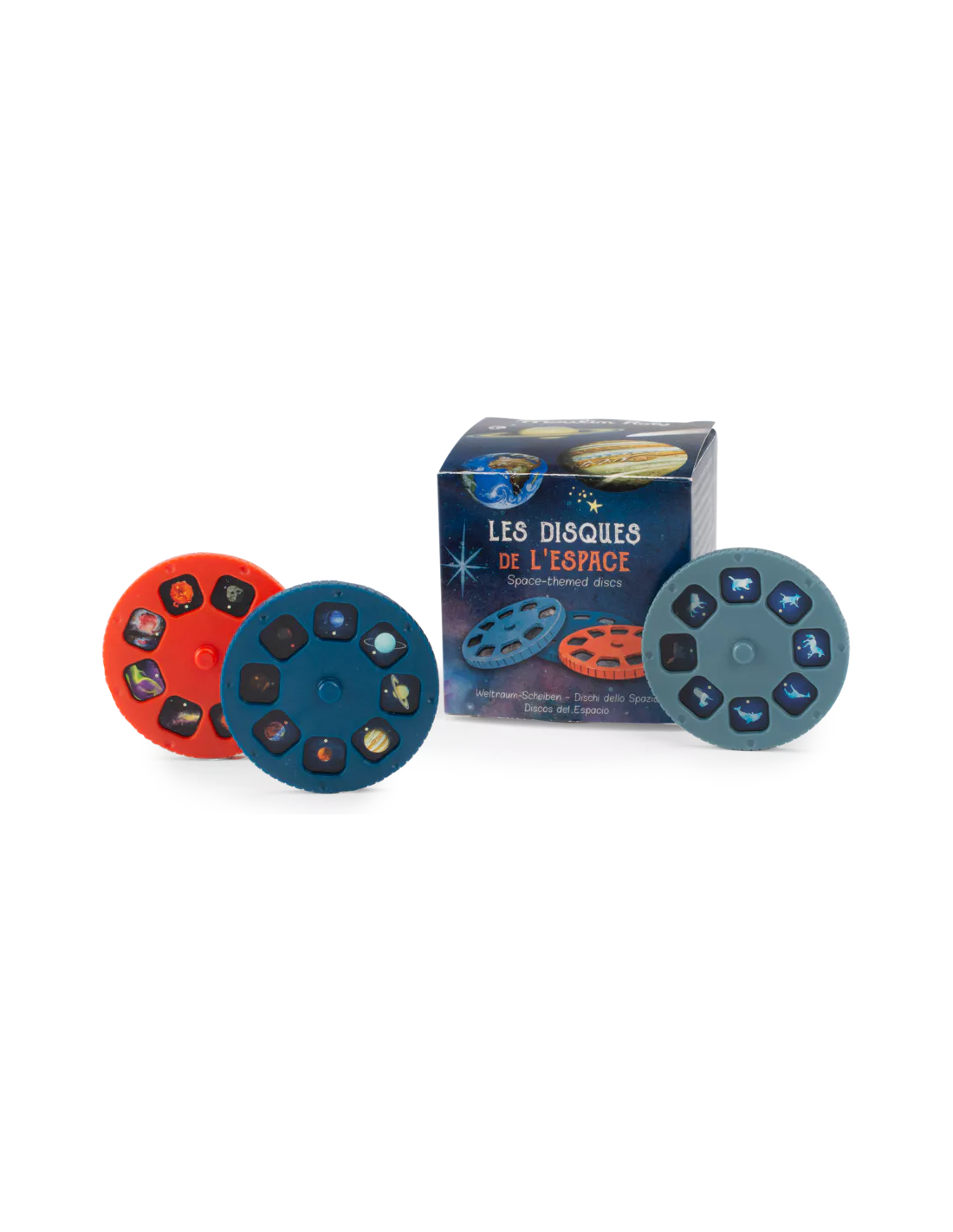 Recharge de trois disques à histoires de la collection L'Explorateur compatibles avec toutes les lampes à histoires Moulin Roty. Pratique, les adeptes des lampes à histoires pourront collectionner facilement les disques de toutes les gammes !