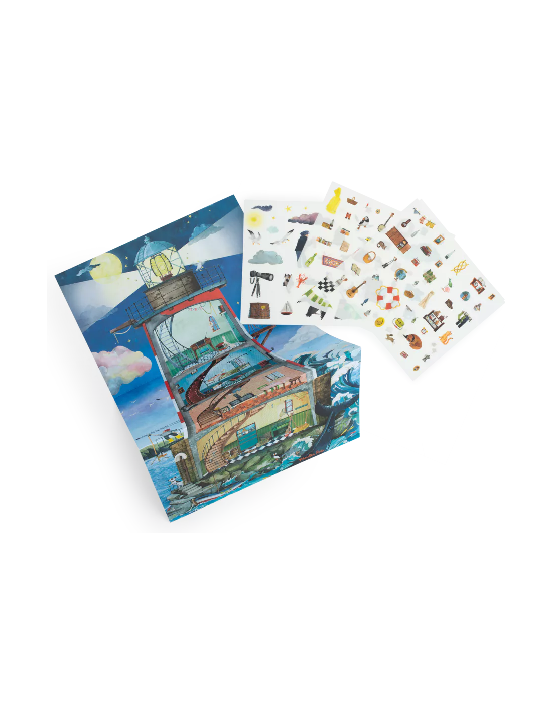 Partez à l'assaut du phare ! Positionnez l'illustration choisie sur le visuel à personnaliser, frottez avec un crayon et le tour est joué ! Le transfert s'opère comme par magie. Livré avec un phare à compléter, un poster et 3planches de décalcomanies.