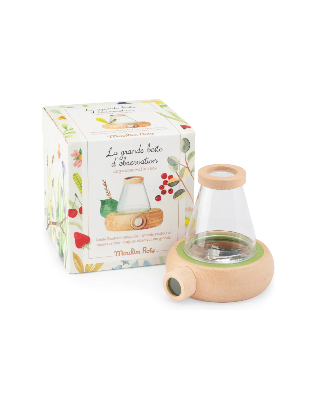 Avec 2 sens d'observation et un zoom x4, la grande boite d'observation t'aidera à déceler les moindres détails des feuilles, fleurs et tout autre trésor du jardin. Elle s'ouvre sur le dessus pour observer et comprendre les habitudes des êtres vivants.