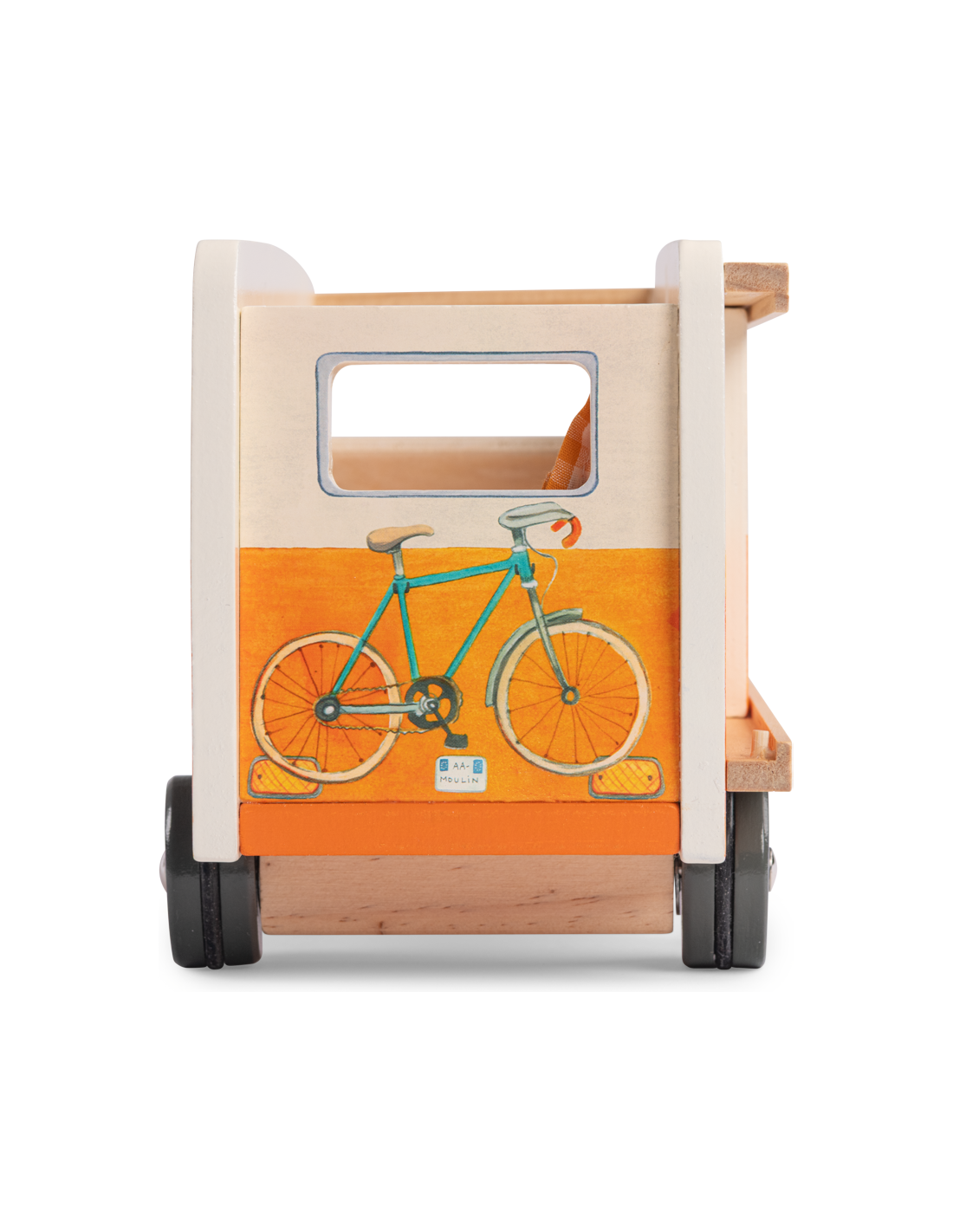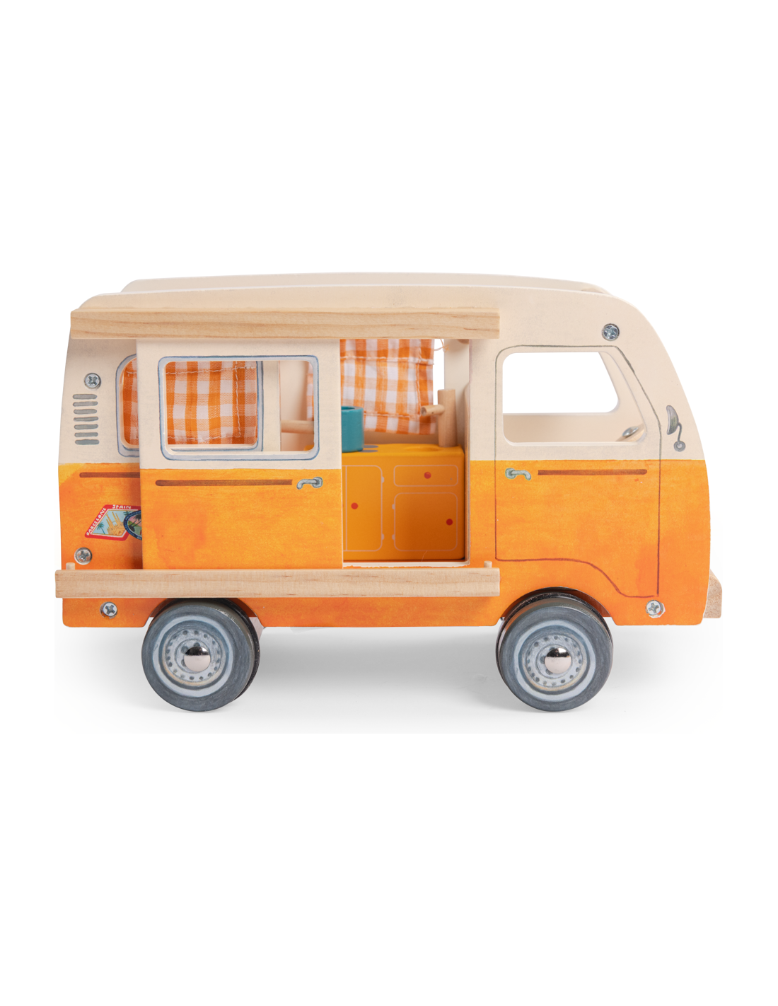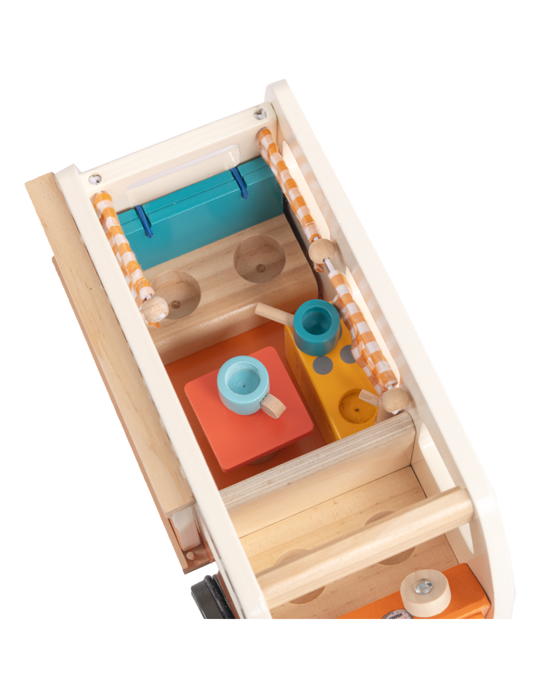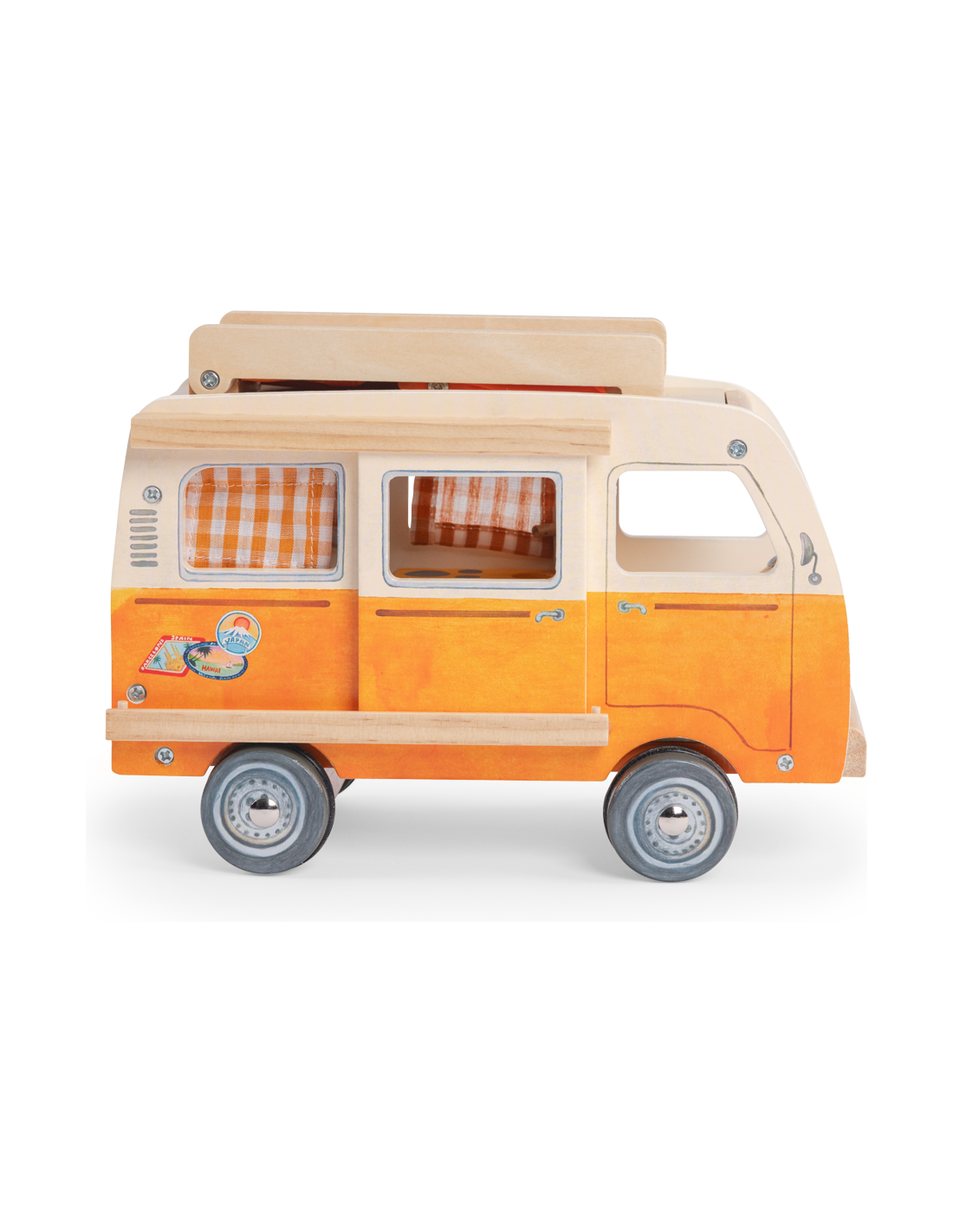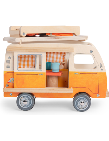 Tut tut ! Le van de la Grande Famille est prêt à partir sillonner le monde. Entièrement équipé, il comprend tous les essentiels du camping : table, banquette, ustensiles, tente de toit. Rien de mieux pour se mettre au vert en famille !