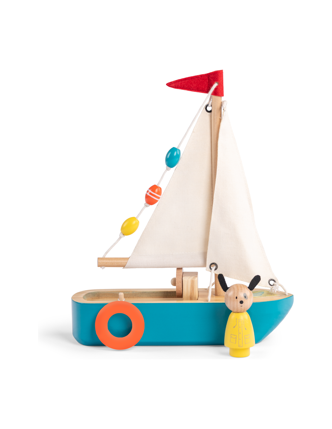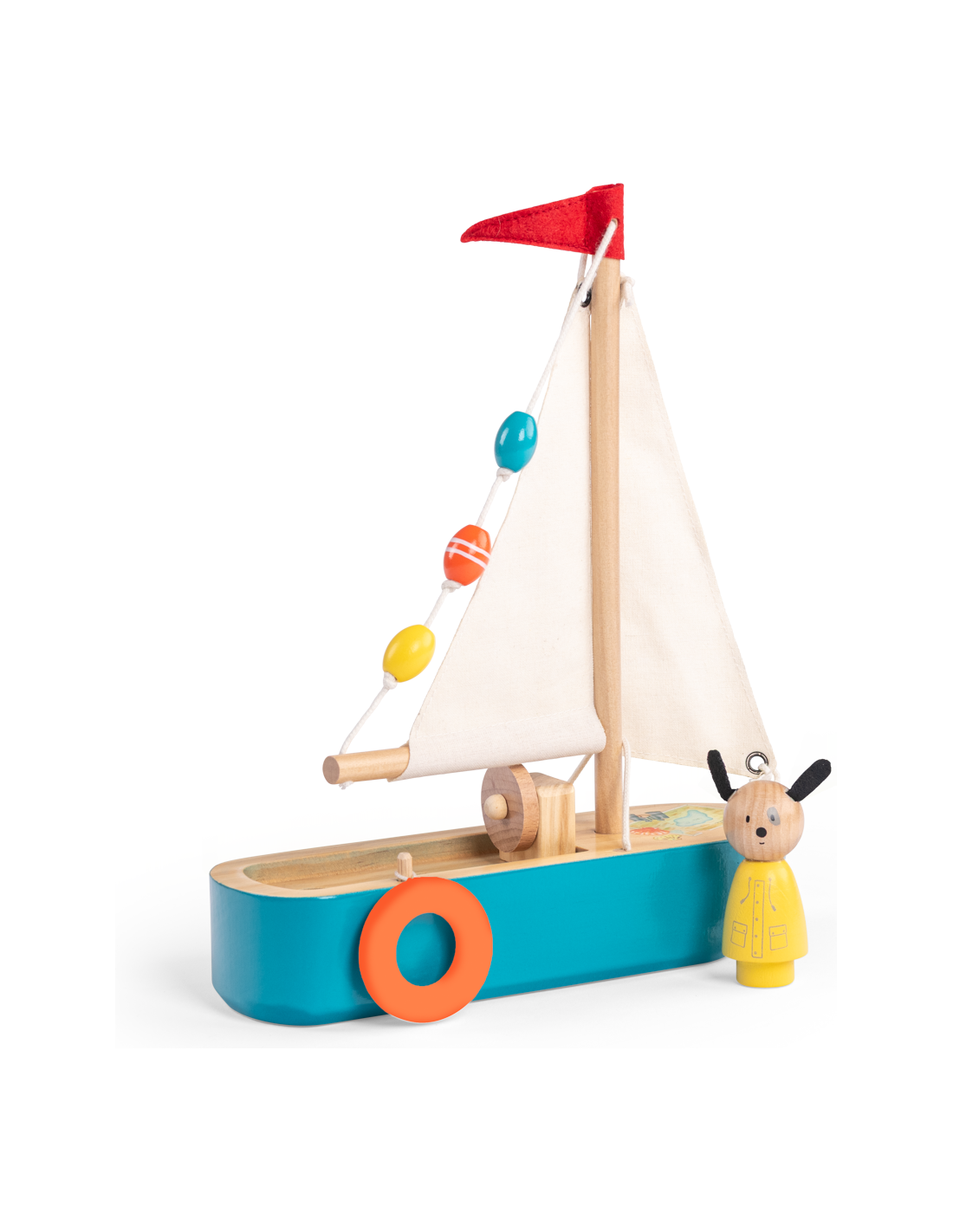 À bâbord toute ! Julius vous fait découvrir le monde à bord de son voilier. Mer Méditerranée, Océan Atlantique, plus rien n'a de secret pour lui ! Tout en bois et illustré, vous naviguerez en sécurité sans perdre le cap grâce à sa carte et sa bouée.