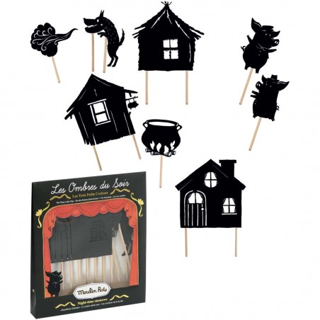 Ombre découpées sur le conte des 3 Petits Cochons, à animer et projeter sur le mur, ou derrière un écran de spectacle, pour inventer de belles histoires quand vient le soir… Elles développeront l'imaginaire des enfants et seront sans cesse réinventées !
