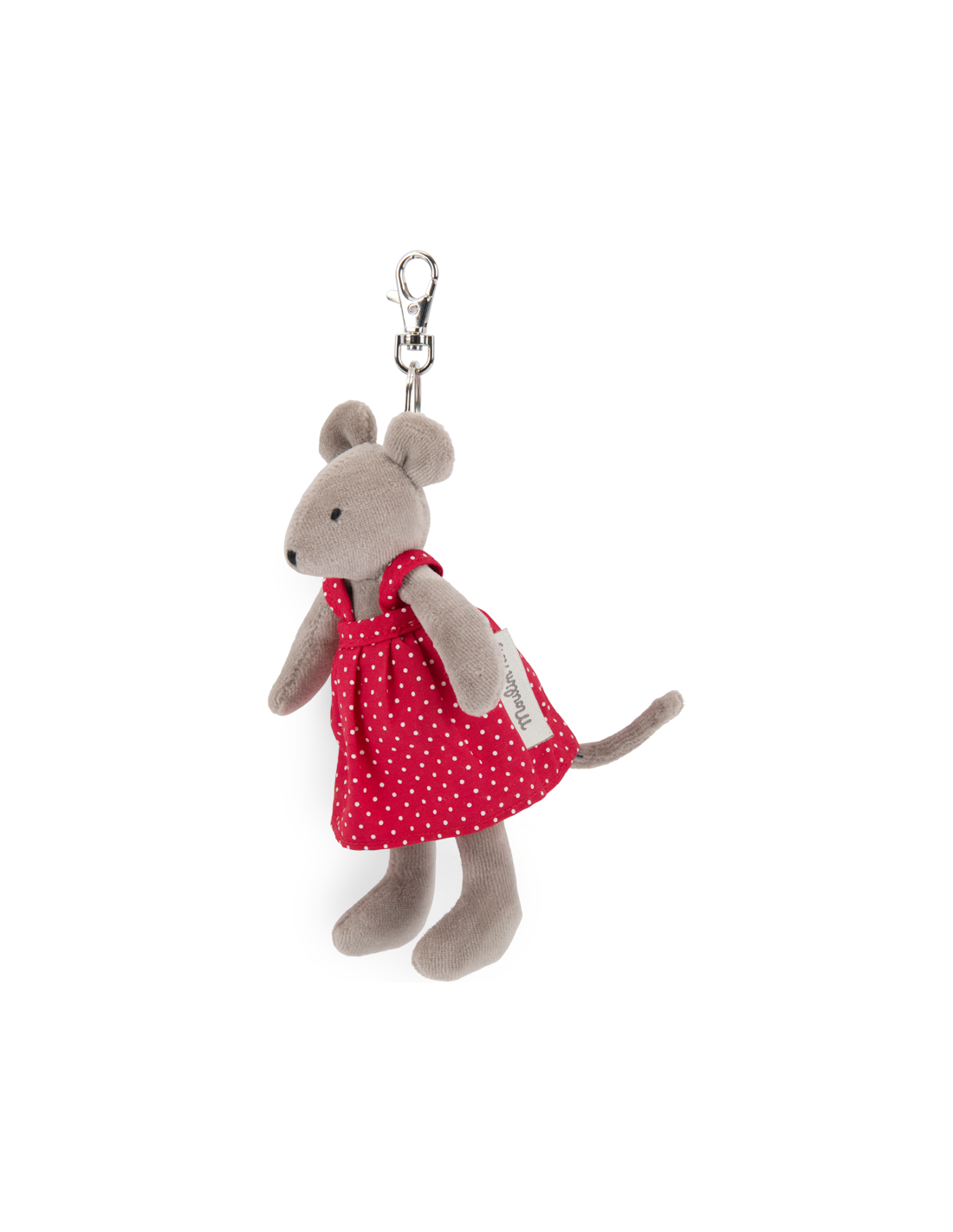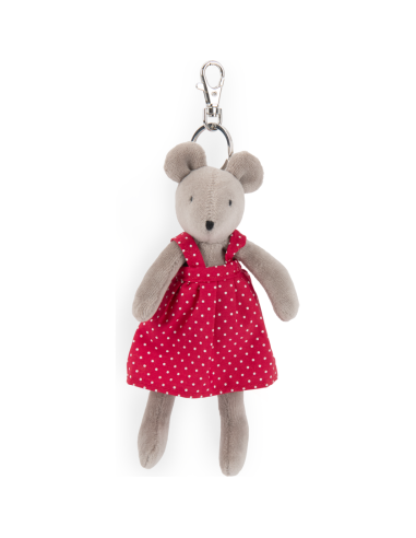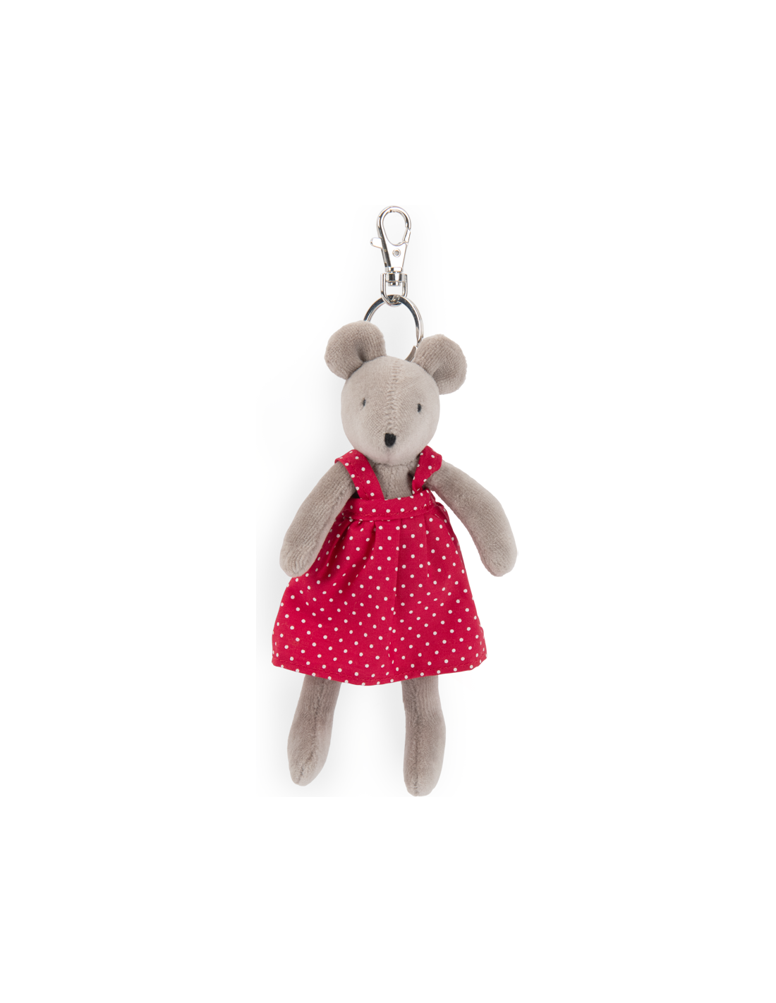 Porte-clé Nini, la souris de la fratrie, de 16 cm. Vêtue de sa robe à pois et son anneau, accrochez-la à vos clés, votre sac ou votre trousse, et laissez cette coquette demoiselle vous accompagner partout !