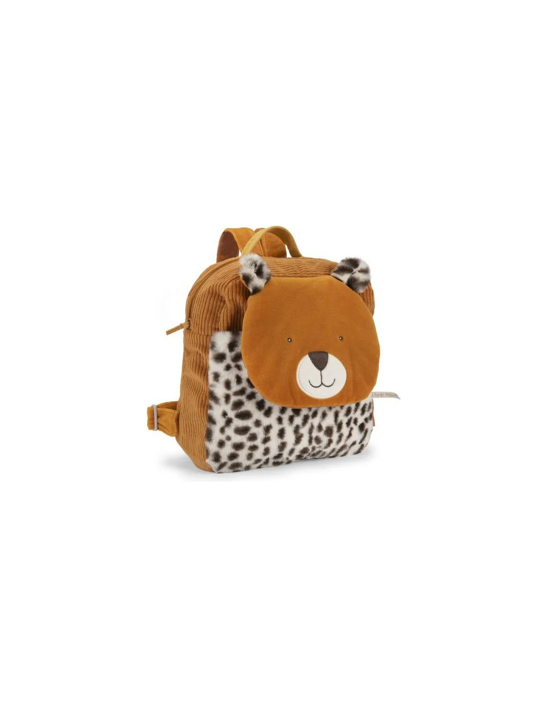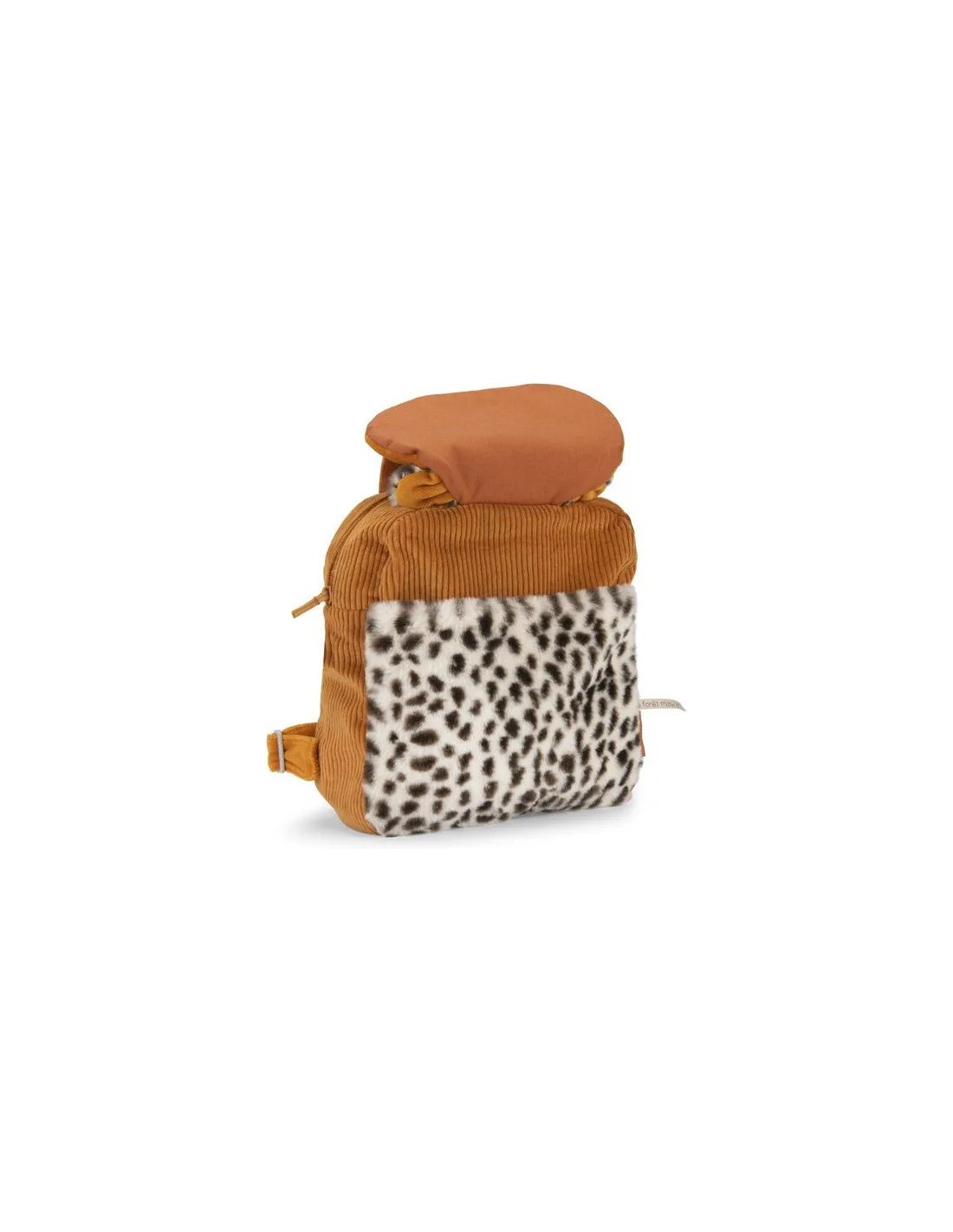 En velours côtelé et en fourrure, Taïgo le léopard se transforme en un sac à dos pratique grâce à sa poche avant plaquée, sa fermeture à zip et ses bretelles réglables.