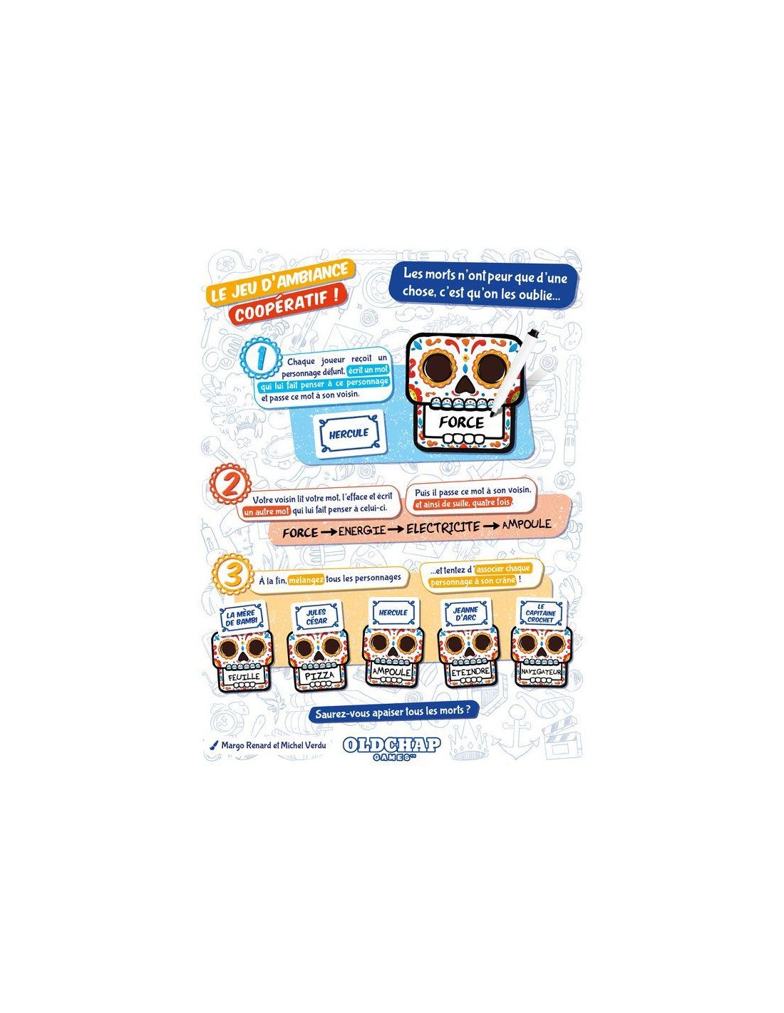 Les morts sont de retour dans Fiesta de los Muertos ! Choisissez un mot pour décrire votre personnage défunt, mais attention ce mot va passer de main en main, et se modifier peu à peu… Parviendrez-vous à retrouver votre personnage et celui des autres joueurs ?
