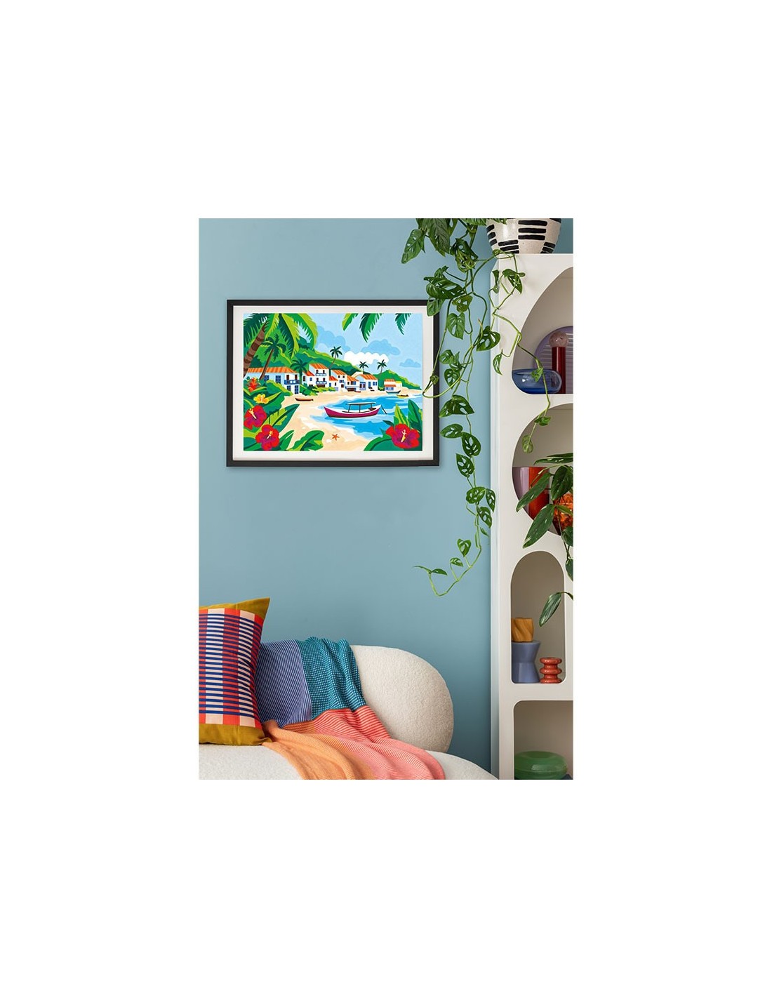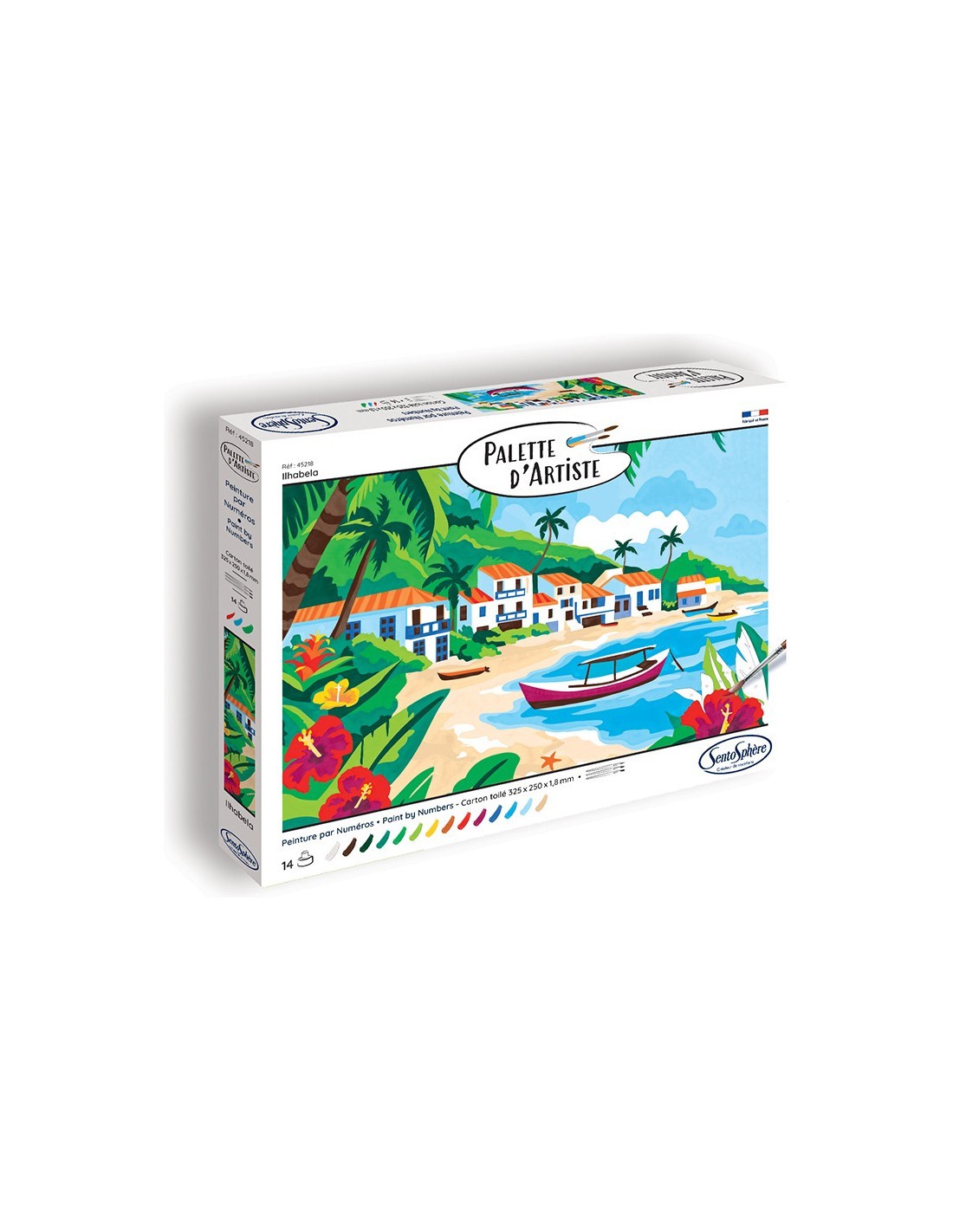 Offrez-vous un instant de détente et de créativité avec la peinture par numéros Palette d’Artiste - Ilhabela. Laissez-vous transporter sur une plage de sable blanc, bordée de palmiers et de fleurs éclatantes, tandis que bateaux et maisons typiques brésiliennes se dessinent au fil de votre pinceau.