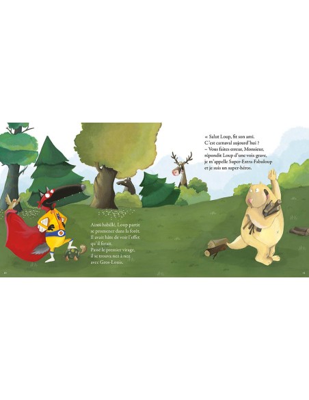 Aujourd'hui, Loup a une super-idée : et s'il devenait un super-héros ? Le temps d'enfiler un super-costume et le voici transformé en Super-Extra-Fabuloup ! Il ne lui reste plus qu'à trouver quelqu'un à sauver... Facile? Pas si évident quand on est super-maladroit ! Heureusement, Loup a une super amoureuse... L 215 mm - H 215 mm.