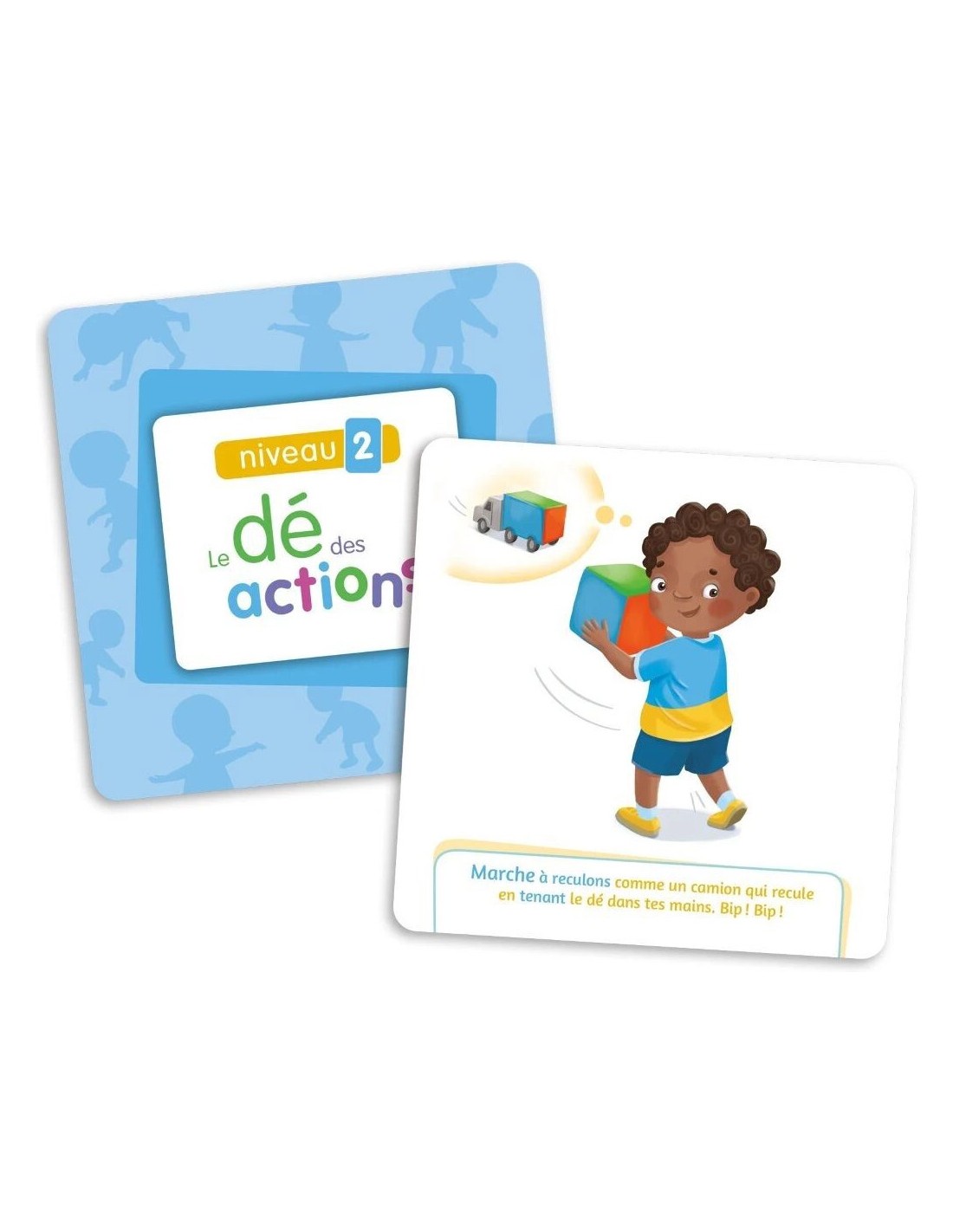Ce jeu a été spécialement conçu pour accompagner les enfants de 1 à 6 ans dans le développement de leurs compétences motrices. En tant qu'extension du jeu Le dé des premiers mots, il propose 60 nouvelles cartes-images à insérer dans les pochettes du dé. Chaque carte illustre une action à réaliser, permettant aux enfants de renforcer leur coordination, leur motricité fine et leur compréhension des gestes à travers un jeu à la fois ludique et éducatif.