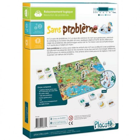 Que ce soit en jouant en famille, entre amis ou à l'école, "Sans problème" offre une expérience éducative enrichissante qui encourage les enfants à penser de manière critique, à être créatifs et à développer leur confiance en eux. C'est un jeu qui fait du plaisir et de l'apprentissage une combinaison gagnante, où chaque enfant est invité à devenir un résolveur de problèmes accompli et confiant.