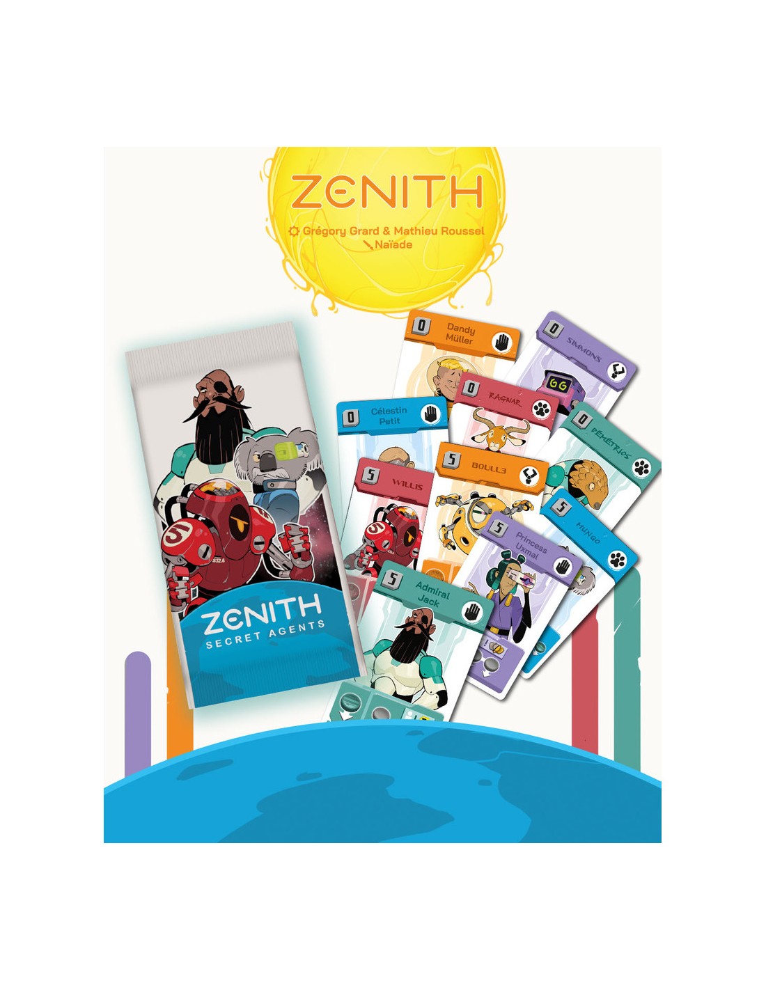 Zénith est un jeu tactique conçu pour 2 joueurs ou pour 4 joueurs en équipes. Dans cet affrontement stratégique, chaque camp se lance dans une lutte pour s’imposer sur les 5 planètes du système solaire. Pouvoir, diplomatie et développement technologique : toutes les stratégies sont permises pour décrocher la victoire.