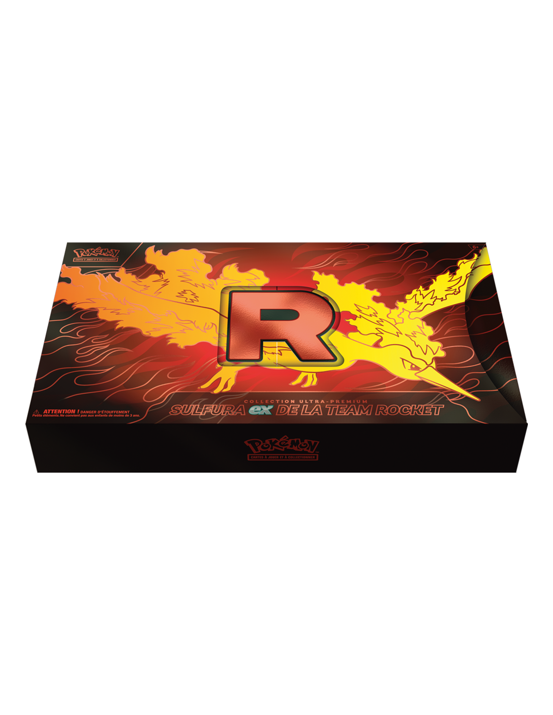 Même les Pokémon légendaires ne résistent pas à la sombre influence de la Team Rocket ! Sulfura-ex de la Team Rocket crée des murs de feu pour se protéger et décimer les plans de ses adversaires. Vous le retrouverez sur une carte « double rare », « ultra rare » et « illustration spéciale rare » aux illustrations magnifiques.