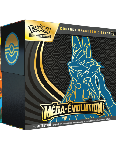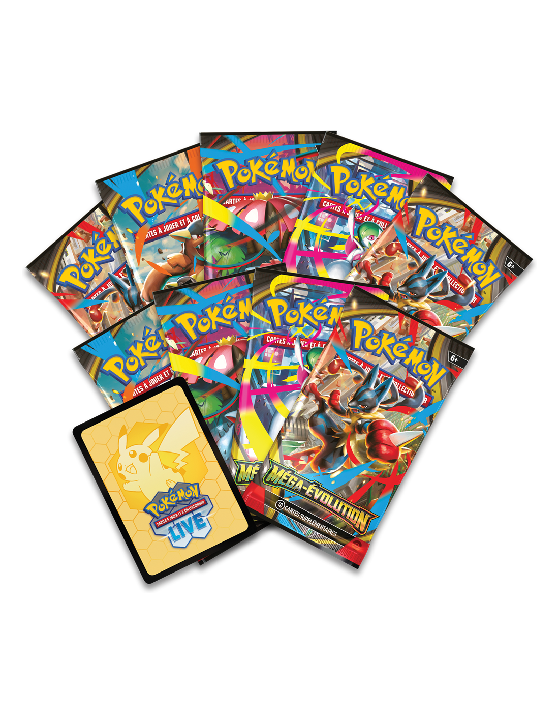 Choisissez vos partenaires Pokémon et préparez-vous pour les combats les plus impressionnants que vous ayez jamais vus ! Contenu : 9 boosters Méga-Évolution du Jcc Pokémon, 1 carte promo brillante entièrement illustrée, 65 protège-cartes, 40 cartes Énergie du Jcc Pokémon, 1 guide de jeu de l'extension Méga-Évolution, 6 dés marqueurs de dégâts, 1 dé lancer de pièce autorisé en compétition, 1 pièce en plastique, 1 coffret de collection avec 6 séparateurs, 1 carte à code pour le Jeu de Cartes à Collectionner Pokémon Live