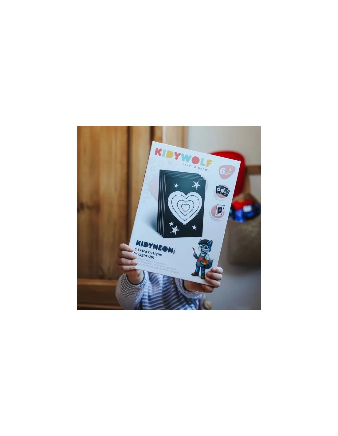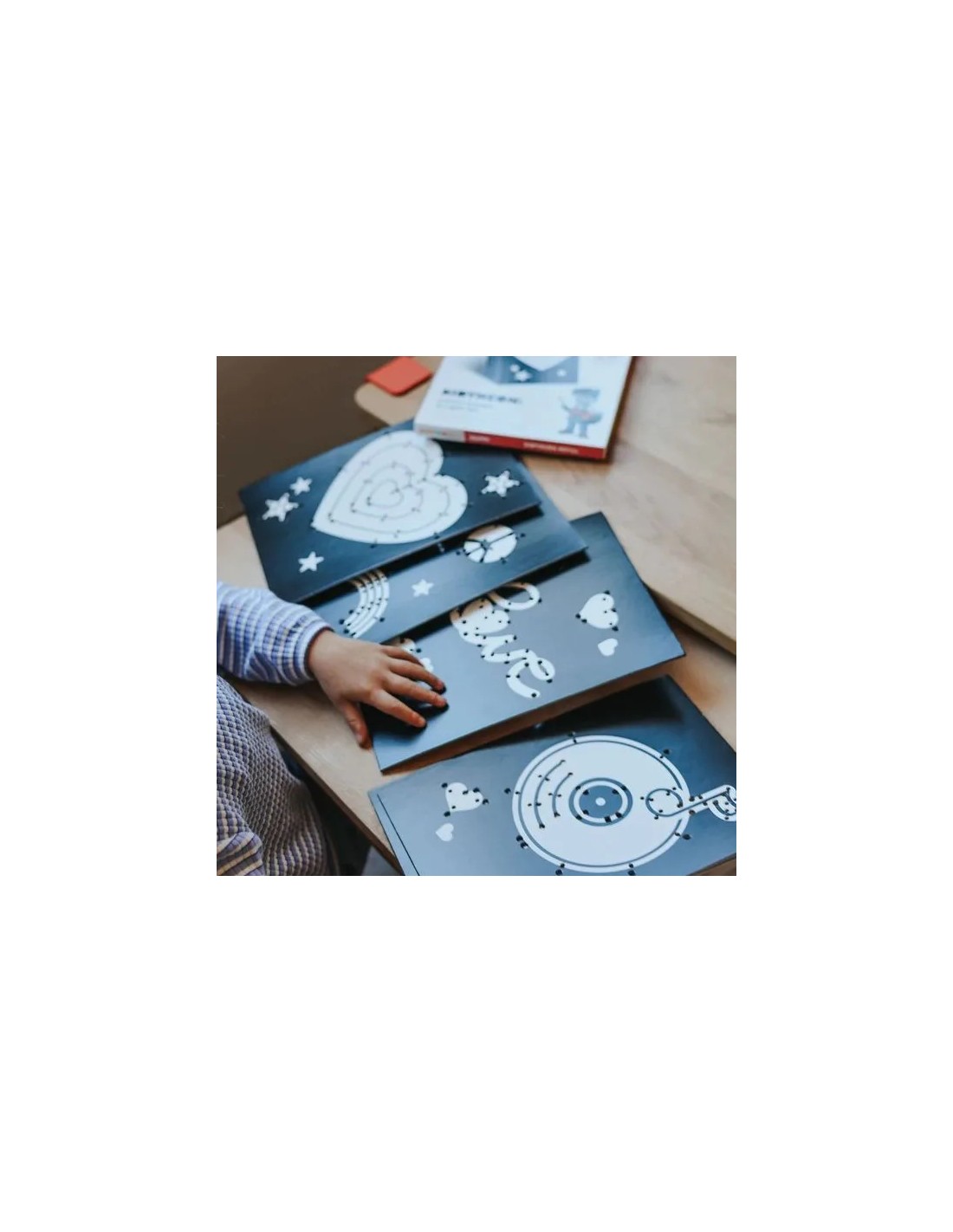 Avec Kidyneon, les enfants découvrent une façon originale et sensorielle de créer. En faisant passer le fil lumineux dans les trous prévus, ils composent une œuvre visuelle étonnante, presque magique ! Une activité valorisante qui développe la patience, la précision et l’envie d’aller au bout de sa création.