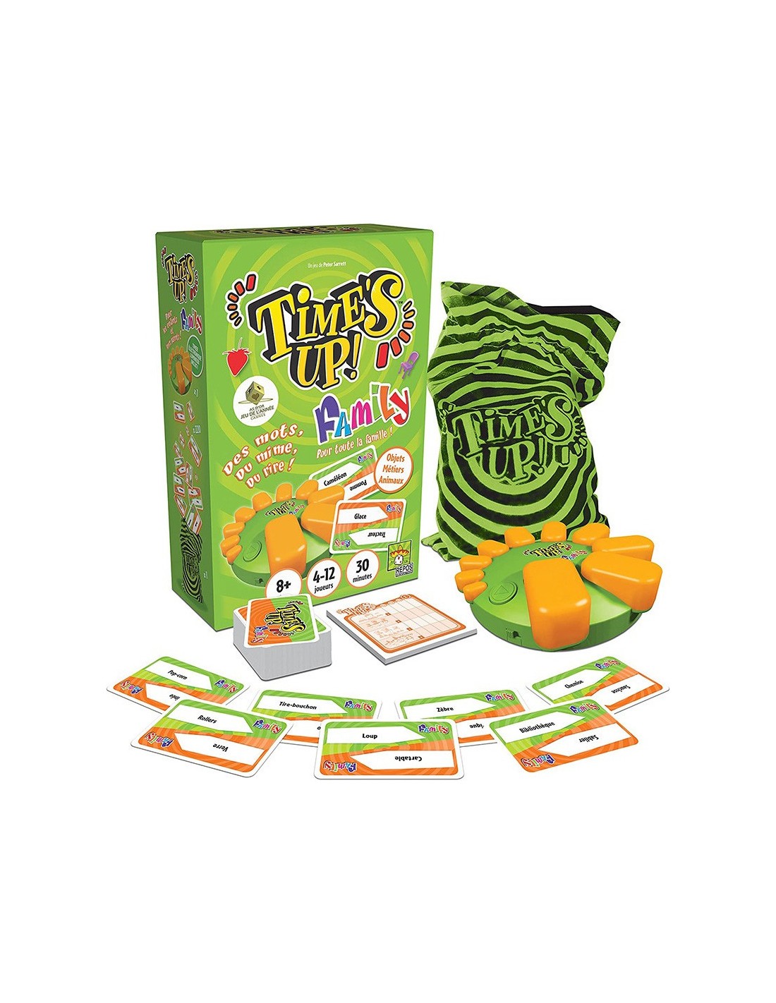 Avec Time's Up! Family, faites deviner des métiers, animaux et des objets insolites en 3 manches toutes plus drôles les unes que les autres, d'abord en les décrivant puis avec un seul mot et enfin par le mime.