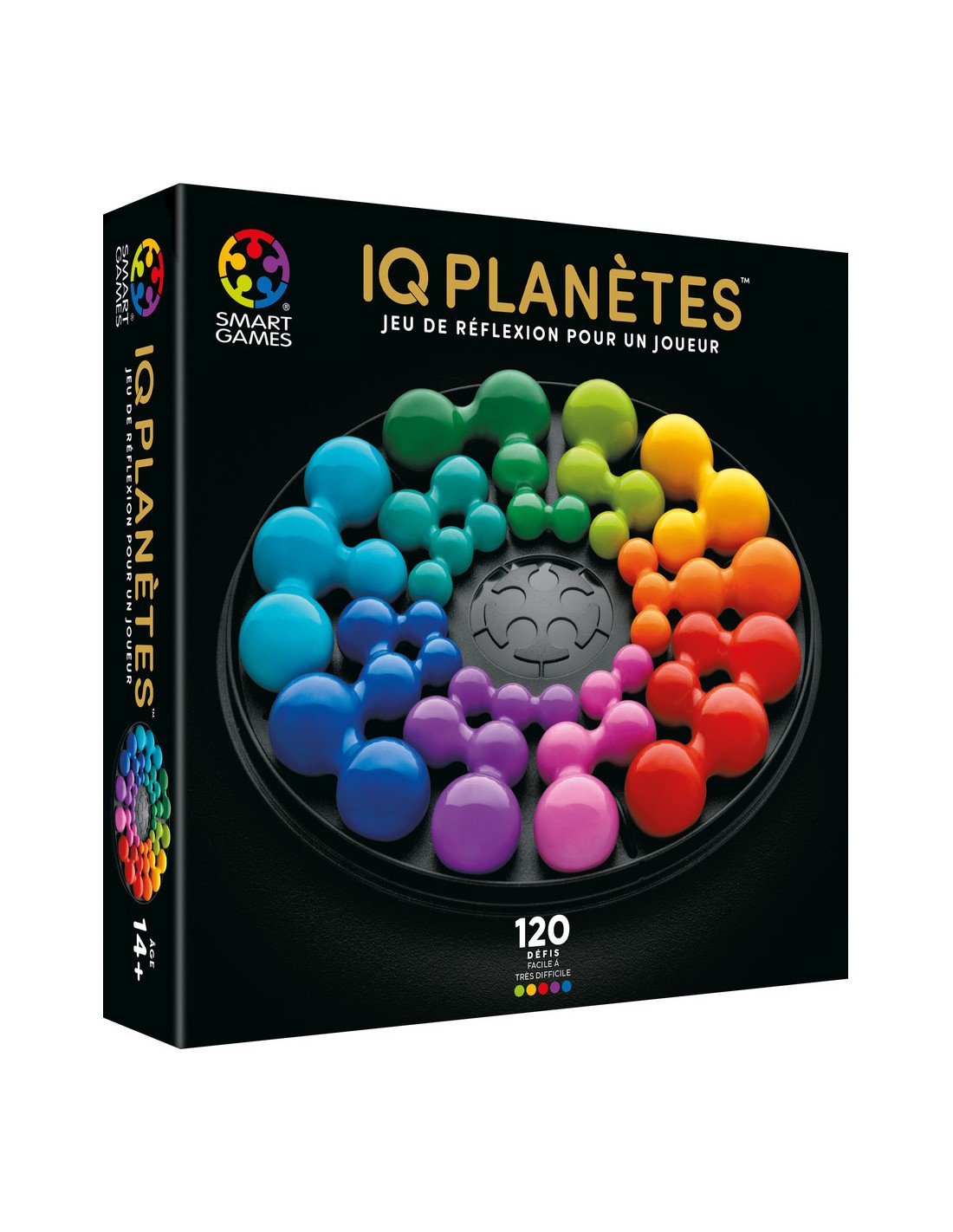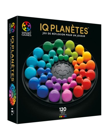 Iq Planètes est un jeu qui réinvente les casse-tête avec des pièces en forme de billes. Parviendrez-vous à remplir la grille et à boucler la boucle ? Avec ses 120 défis classés du plus facile au plus difficile, ce jeu élégant est le cadeau idéal pour les adultes qui aiment les casse-tête.- Étape 1 : Choisissez un défi dans le livret. Placez les pièces sur le plateau comme indiqué dans le défi. Chaque pièce est composée de billes de différentes tailles. Les grosses billes correspondent aux emplacements sur le bord du plateau. Les petites billes correspondent aux emplacements au centre du plateau.