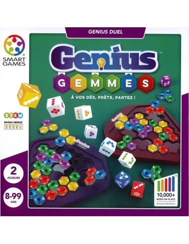 Le jeu « Genius Gemmes » vous propose des défis encore plus difficiles à réaliser dans la lignée des jeux « Genius Square » et « Genius Star » ! Un jeu destiné aussi bien à la famille qu’aux joueurs chevronnés ou petits et grands pourront s’affronter à égalité de chance de l’emporter grâce aux différents niveaux proposés.