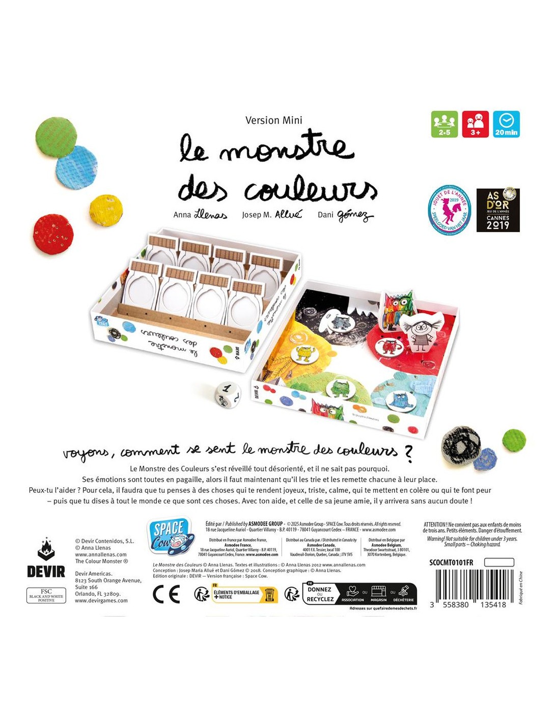 Ensuite, on les remettra ensemble dans leurs jarres."Le Monstre des couleurs est un jeu pour les enfants à partir de 3 ans, inspiré du best-seller de la littérature pour enfants d'Anna Llenas autour des émotions. Dans cette nouvelle "mini édition", sa boîte et tous ses éléments ont été repensées pour offrir un format beaucoup plus compact.
