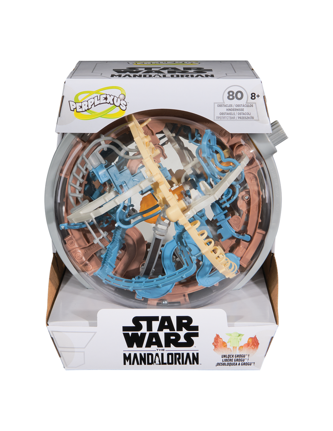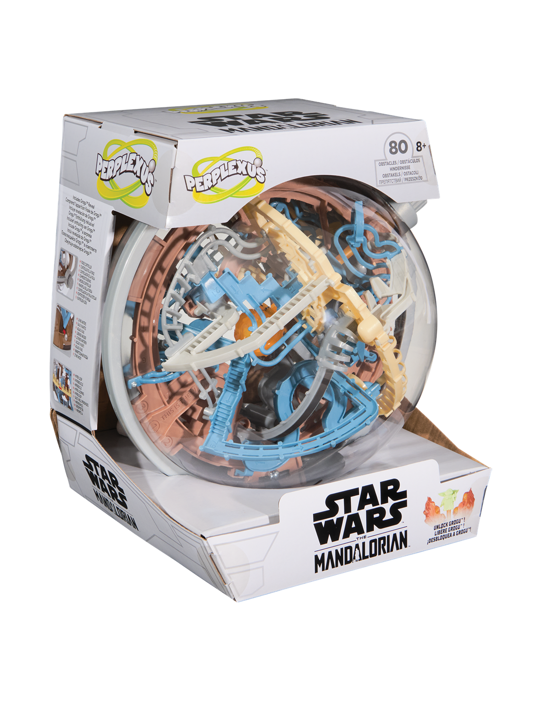 Avec le Perplexus STAR WARS™ THE MANDOLORIAN™, faites-rouler votre bille avec adresse dans ce labyrinthe dont les obstacles puisent leur inspiration dans la célèbre série. À l'intérieur de cette sphère transparente, relevez les défis du labyrinthe, jusqu'à libérer Grogu, l'Enfant prodige. Patience et persévérance seront nécessaires pour franchir les 80 obstacles 3D (dont plusieurs inédits) du casse-tête. Son niveau de difficulté et son diamètre correspondent aux modèles Epic et Portal, avec un parcours d'une longueur équivalente.