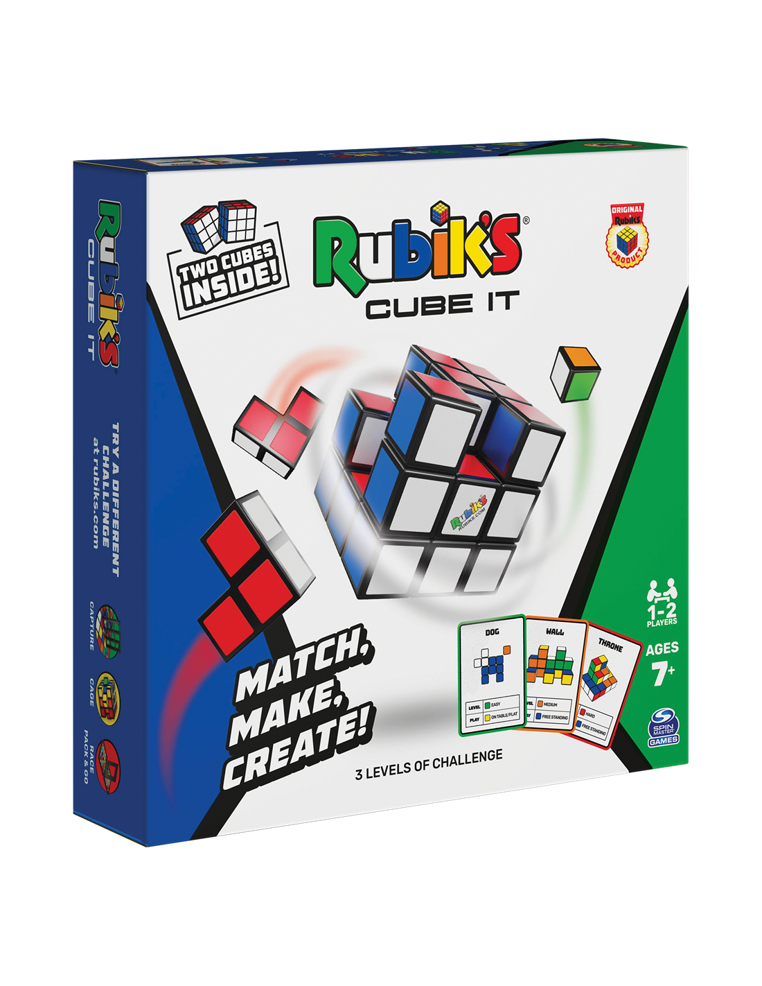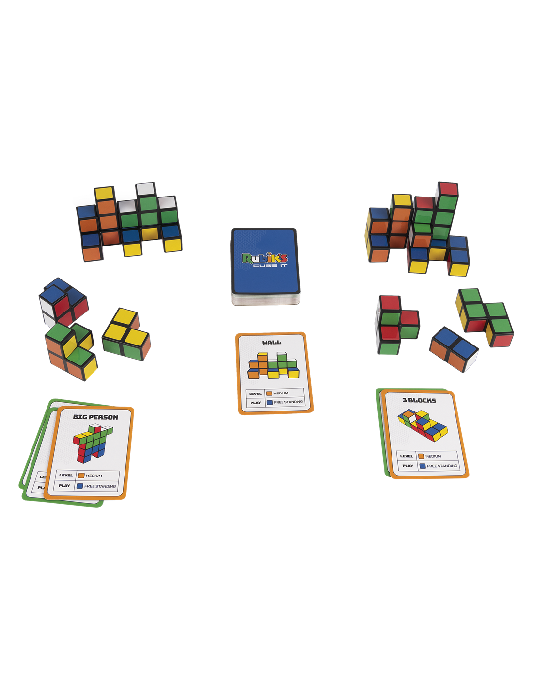 Reconstruire, reproduire, réinventer ! Découvrez ce jeu de rapidité dans l'univers Rubik's Cube avec pour but de reproduire le plus vite possible les configurations indiquées sur les cartes. Les cartes challenge ont trois niveaux de difficulté. Vous pouvez ainsi reconstituer le célèbre Cube de Rubik ou imaginer vos propres figures.