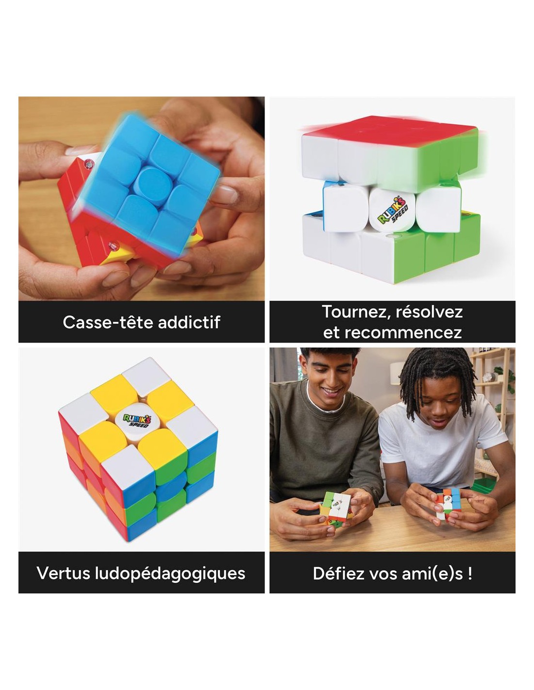 Un jeu plus fluide : le Rubik’s Speed est un cube de vitesse magnétique qui dispose d'un noyau plus solide et est équipé d'un mécanisme concu pour le rendre encore plus rapide, plus lisse et plus fiable que jamais. Vous pouvez maintenant effectuer des déplacements plus rapides, plus fluides et sans accrocs qui vous feraient perdre du temps.