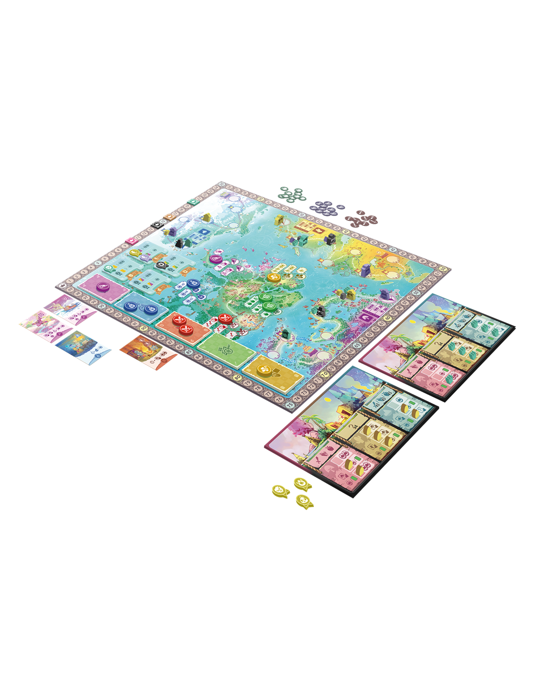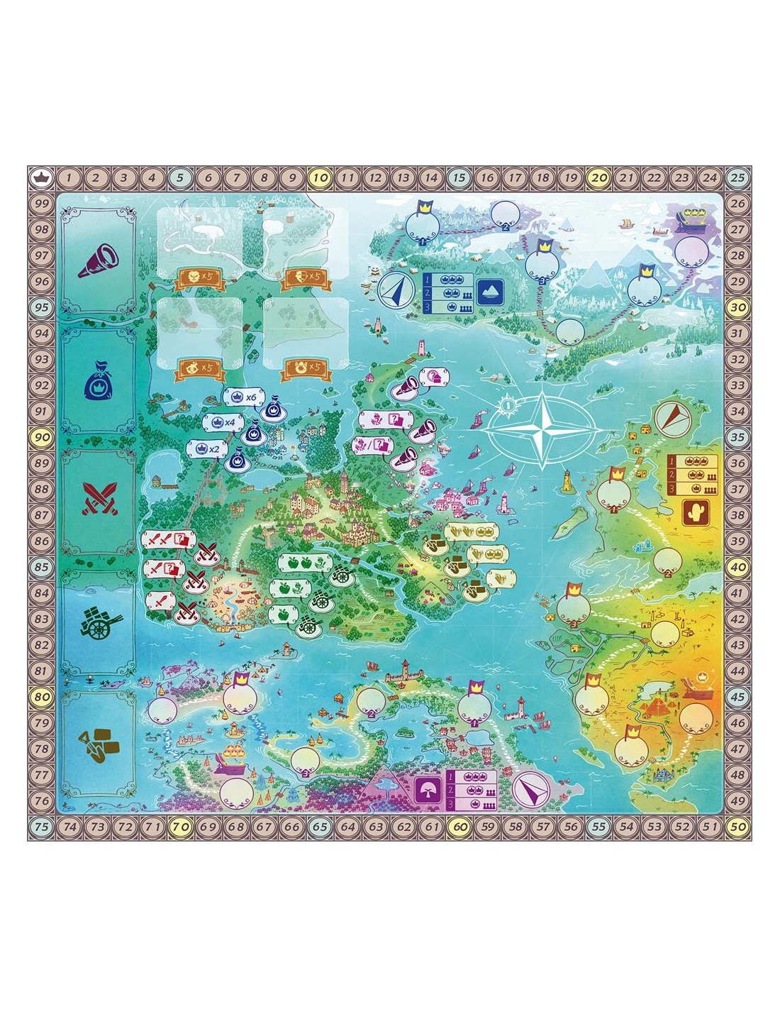 Après avoir sélectionné des cartes Aventure, vous utiliserez les mêmes jetons que ceux que vous avez sélectionnés dans le sac pour visiter des lieux sur le continent de Navoria lors d'une phase de placement d'ouvriers. La puissance des lieux de placement d'ouvriers diminue après le placement de chaque jeton, vous devrez donc visiter chaque lieu en premier pour obtenir les meilleurs avantages !