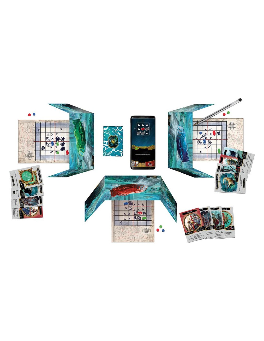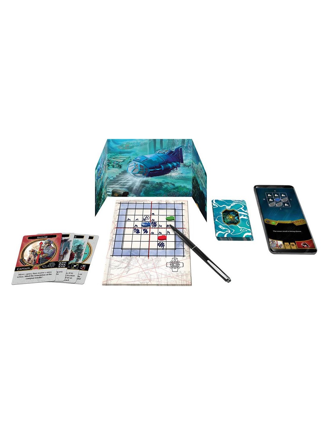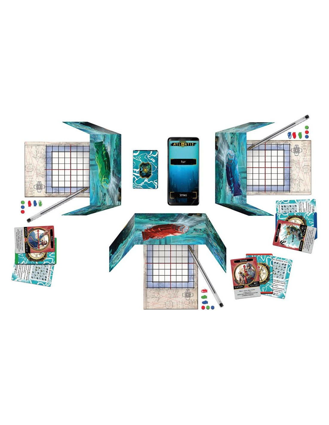 Une forte rafale vous fait lever les yeux. Sous vos pieds, la coque en acier vibre doucement. La mer est encore calme, mais vous sentez venir la tempête. Vous vous rappelez les histoires de votre grand-père au sujet de terres lointaines, d'odeurs exotiques et des sept mers. Même s’il semblait que le monde entier avait déjà été exploré, il rêvait d’un endroit mystérieux, le plus légendaire de tous. « Cet endroit renferme des trésors inestimables et des secrets oubliés depuis bien longtemps, défendus par de dangereux gardiens. » Vos yeux brillaient à cette idée. À cette époque, vous avez juré de trouver l’Atlantide et aujourd’hui, vous possédez quelque chose que votre grand-père n’aurait jamais pu imaginer : un sous-marin. Vous regardez vers l’est et apercevez le sous-marin de votre adversaire à l’horizon : le capitaine Glue est là ! Finding Atlantis est un jeu compétitif d’exploration stratégique et de déduction, avec des cartes uniques de l’océan générées par une application. Pour remporter la victoire, il vous faudra faire preuve de logique, gérer votre main judicieusement et vous déplacer discrètement. Le premier joueur qui parvient à trouver et explorer toutes les zones de la cité engloutie de l’Atlantide gagne la partie. Prépare-toi pour un voyage exaltant sans précédent ! Équipé de technologie de pointe et d'un sous-marin dernier cri, tu t'apprêtes à faire une découverte mythique : celle de l’énigmatique citée de l’Atlantide ! Les joueurs devront tirer des déductions, être stratégiques dans la gestion de leur main et cacher leurs déplacements pour remporter la victoire. Le premier aventurier à découvrir et à parcourir cette citée mythique remportera la victoire et sera à jamais dans les annales de l'histoire.- Un jeu lié à une application :il ne faut qu’un appareil mobile pour jouer à Finding Atlantis. Il suffit de télécharger l’application, configurer le jeu puis c’est parti !
