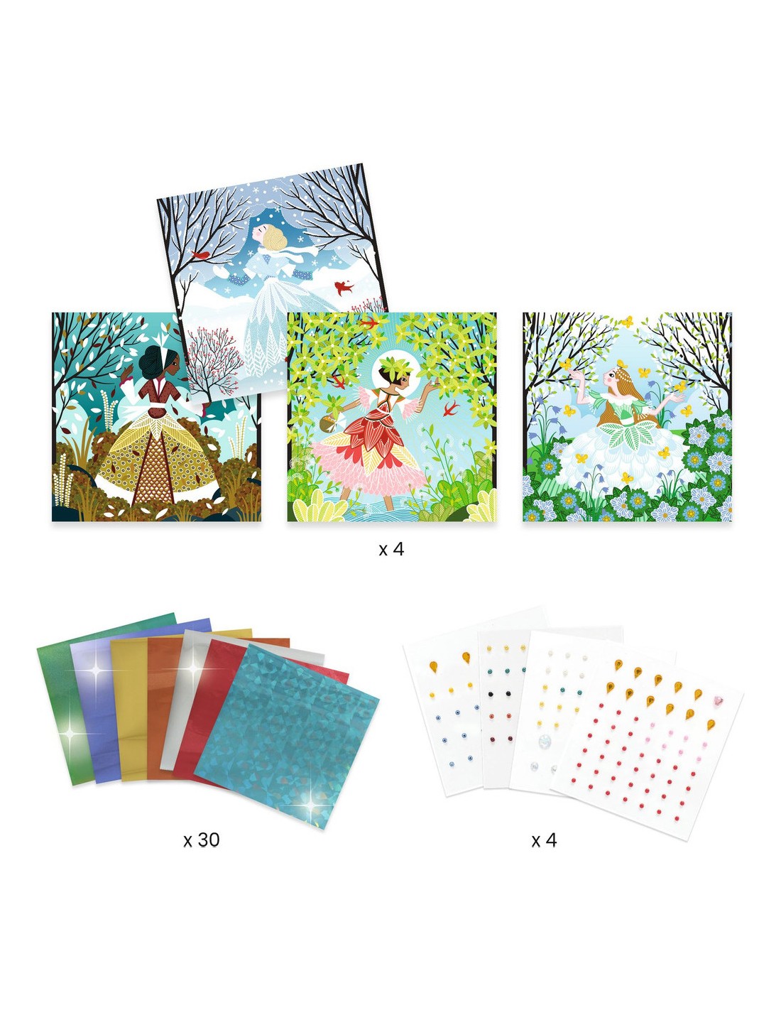 - 4 robes à décorer aux couleurs des saisons.