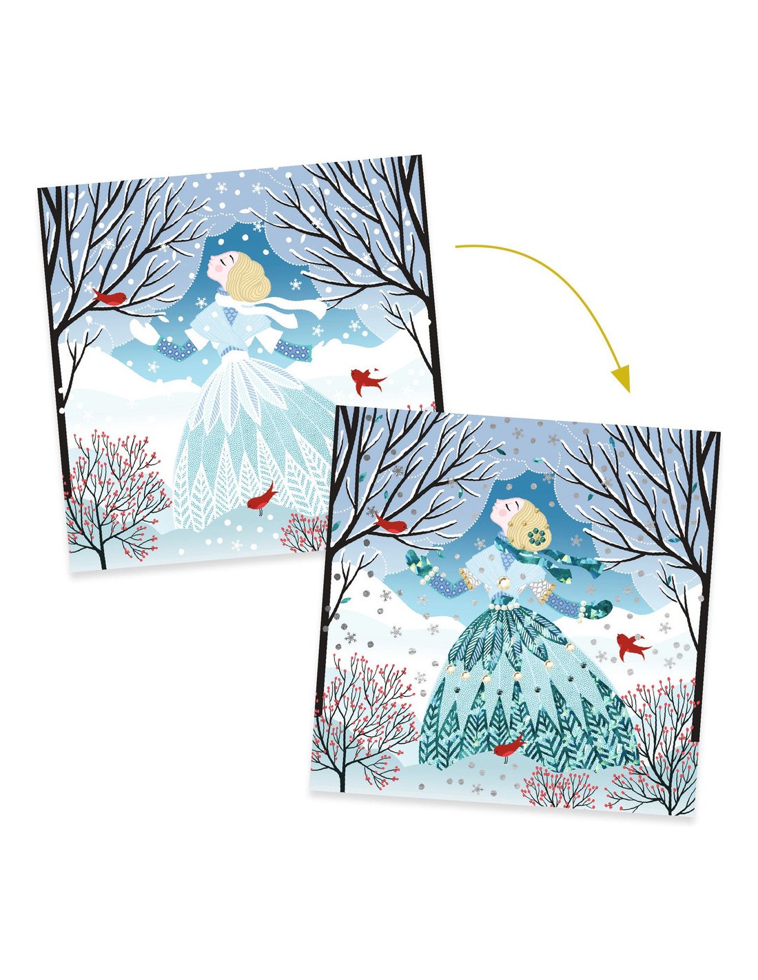 - Des reflets métallisés et des strass pour illuminer les tableaux.