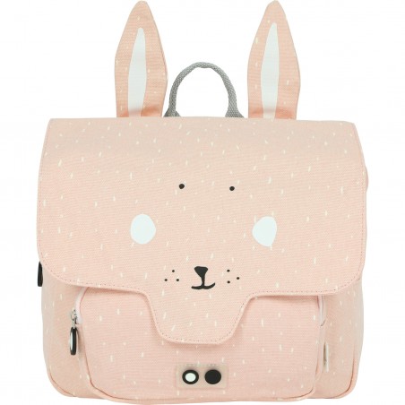Avec ce cartable mignon, votre tout petit sera prêt pour la grande aventure de l’école! Ce cartable a des bretelles rembourrées et réglables. Il y a une petite poignée sur le dessus pour le tenir en mains plus facilement et le suspendre sur n’importe quel crochet. La fermeture au niveau de la poitrine empêchera que le cartable ne tombe trop facilement. Le cartable a un grand compartiment et une petite poche à l’avant où peut s’insérer facilement un petit en-cas. Les deux ouvertures se font grâce à une fermeture éclair, ce qui rend la manipulation plus facile pour nos petits bouts. Afin de ne pas perdre ce nouveau copain de route, une nominette se trouve sur l’intérieur du cartable. De plus, ce cartable est hydrofuge et peut passer en machine, en cycle doux. Mais à noter que plus il sera lavé, plus cela influera sur le côté hydrofuge du cartable.