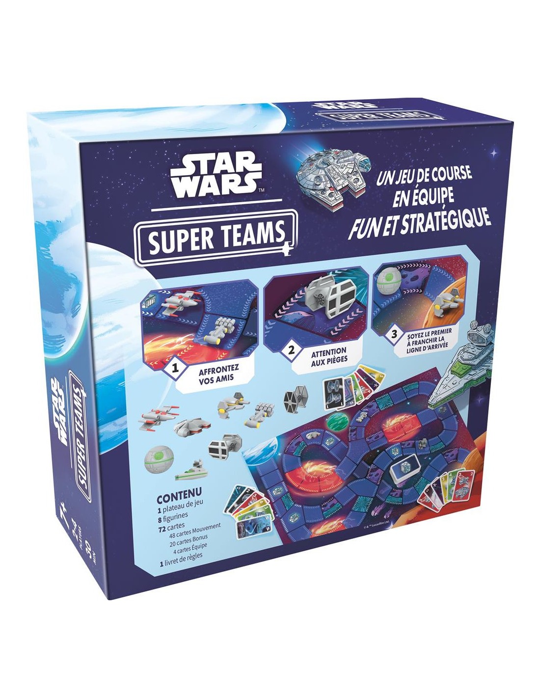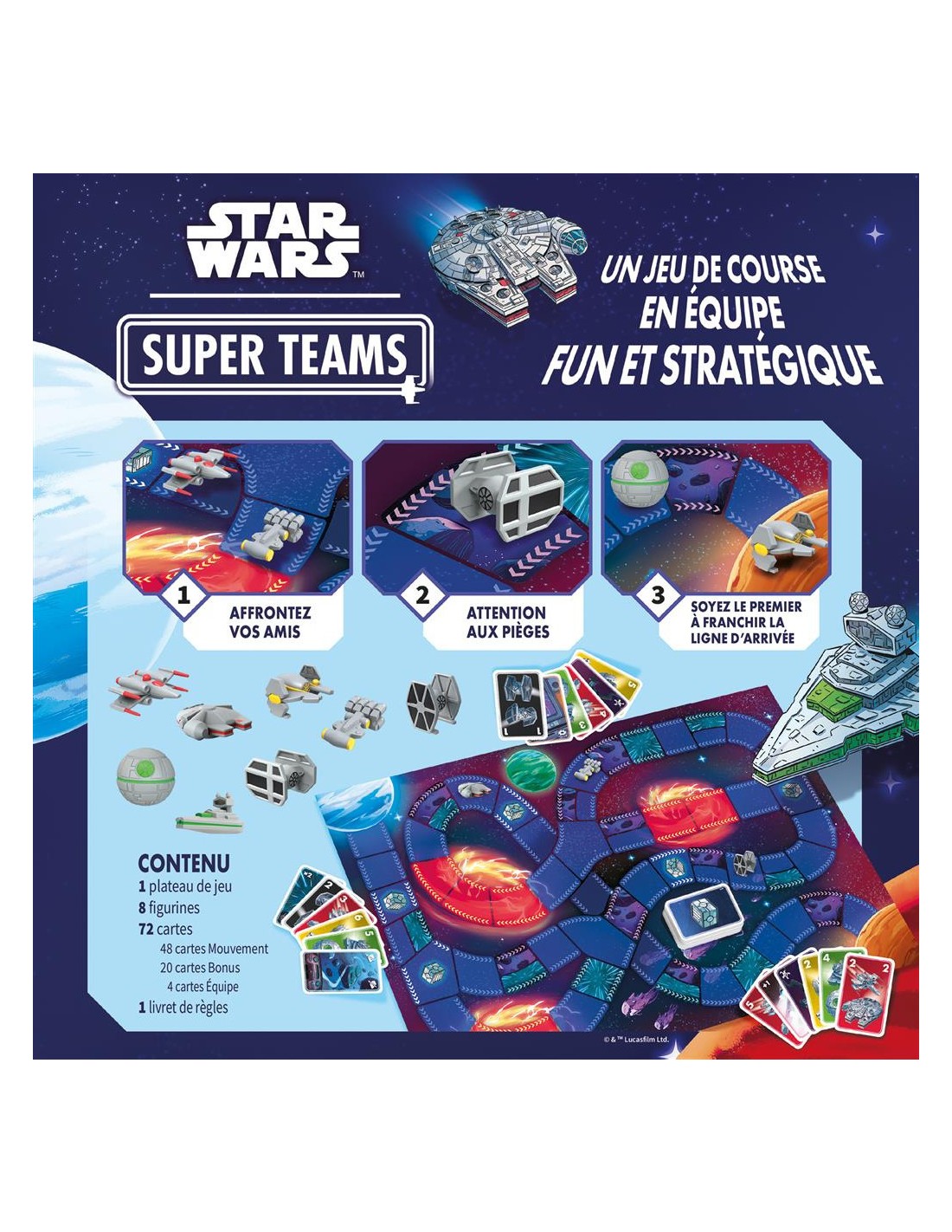 Star Wars Super Teams : une course stratégique et amusante pour toute la famille, dans laquelle votre équipe tentera de franchir la ligne d'arrivée avec tous ses vaisseaux. Il s'agit d'une version thématique indépendante du jeu Sonic - Superteams avec une nouvelle carte, des propriétés de cartes bonus révisées et quelques améliorations des règles.